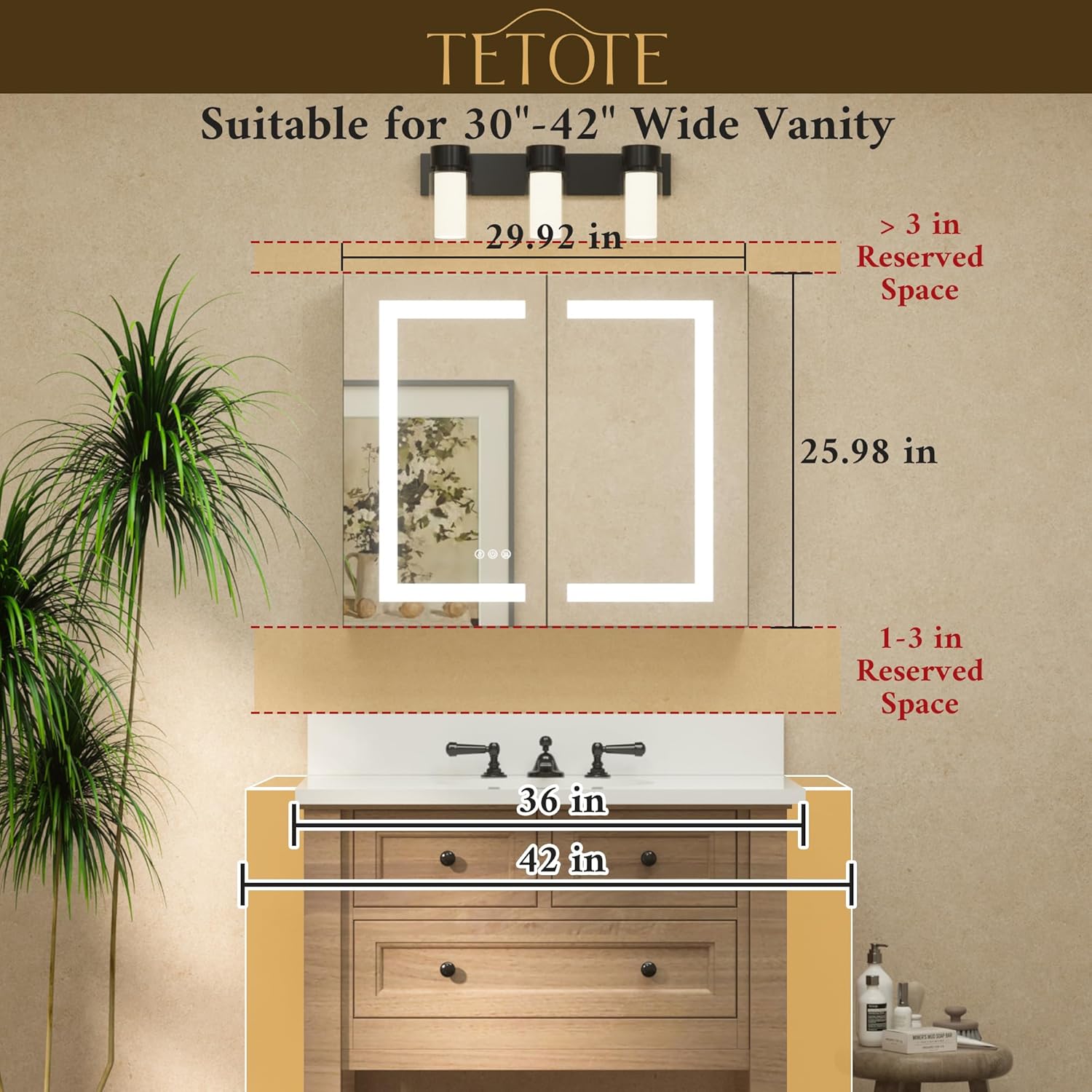 【Spacious & Flexible Interior for Easy Organization】Equipped with 15/64” tempered glass adjustable shelves this 30 x 26 inch led lighted bathroom vanity cabinet wall mount offers flexible storage to keep your bathroom essentials organized. Create an open airy bathroom while ensuring easy access to your daily items.