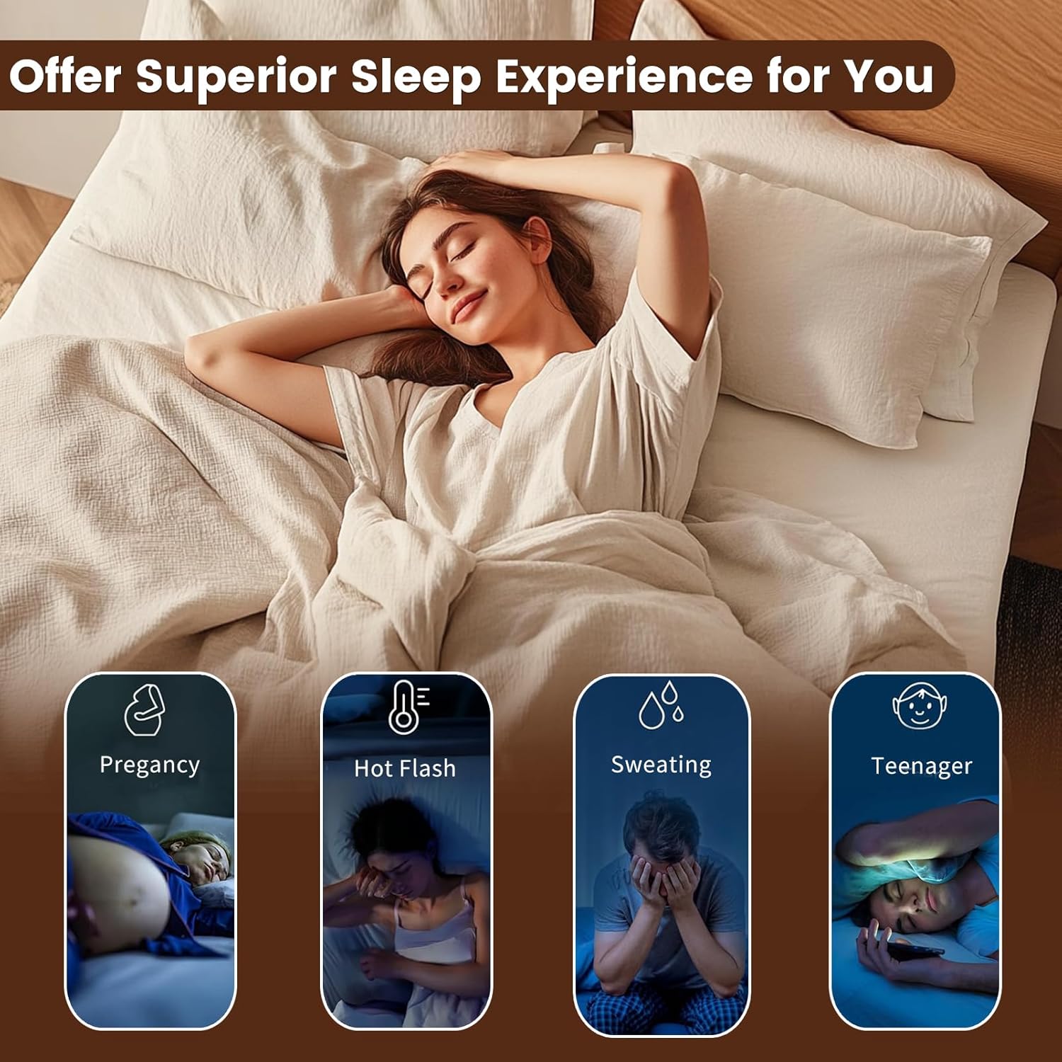 Deep Pocket Queen Sheets: Secure Fit for Thick Mattresses,Expertly tailored with a fully elasticized deep pocket (fits up to 22"), the fitted sheet stays firmly in place, even on tall mattresses (memory foam, pillow-top, or toppers). No more slipping or bunching up at night