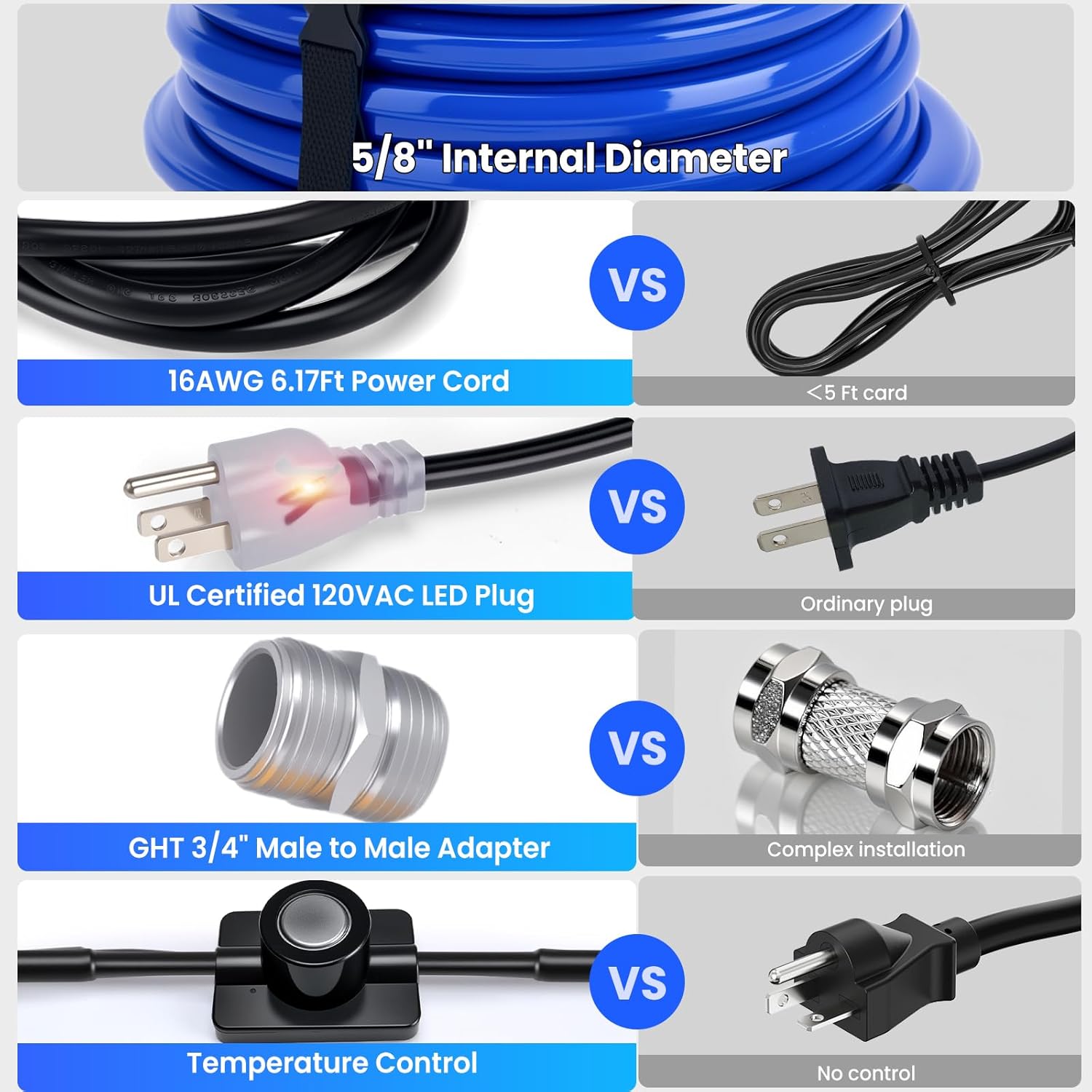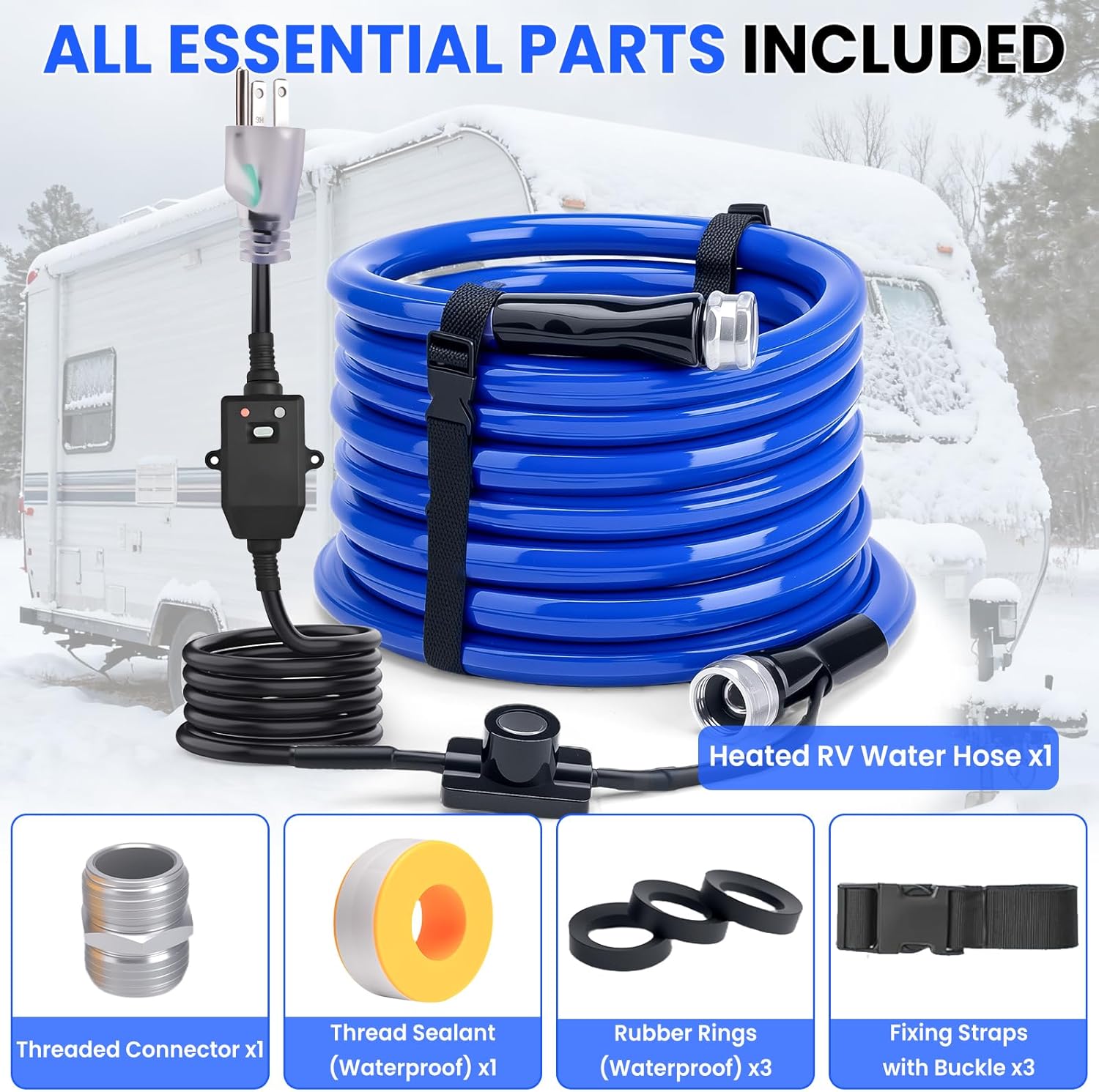 Package Include1*100FT heated hose 3*washers 1*3/4 GHT American screw interface 1*bandage 2*straps. offer a 1-year warranty for your peace of mind. If you have any questions feel free to contact us. Choose for reliable durable and secure water hose solutions.