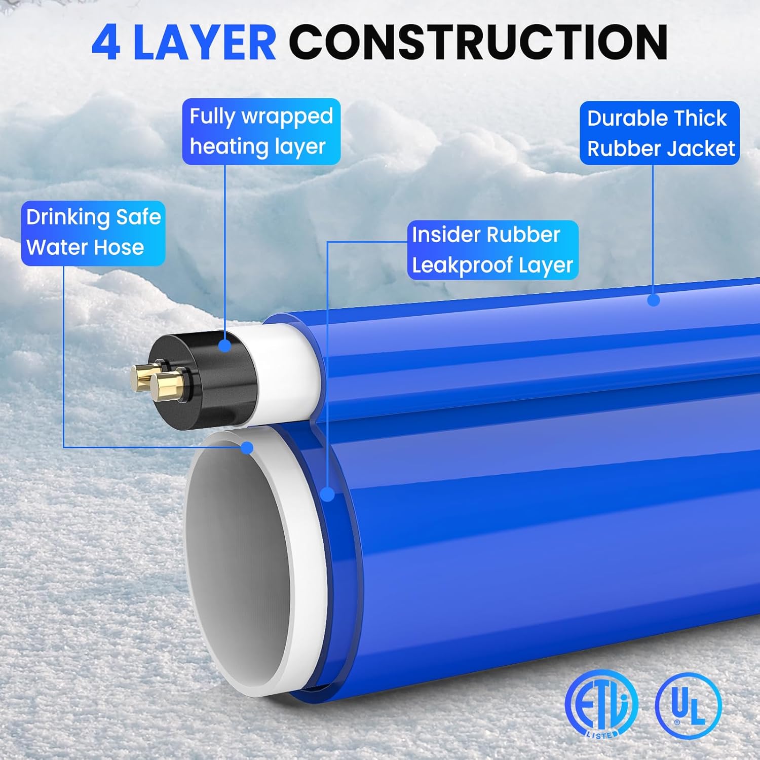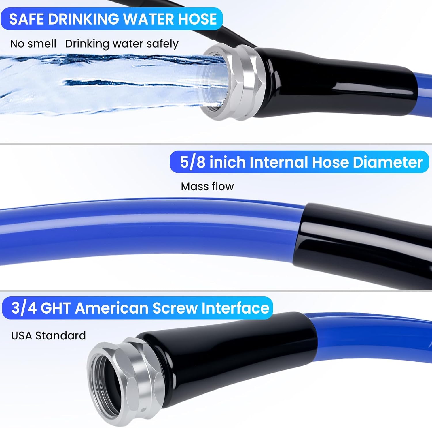 Safety and ProtectionMade from food-grade safe materials the heated water hose is free of lead and BPA ensuring no peculiar smell or harmful elements in your water. The durable outer jacket and robust stainless steel fittings protect the rv water hose from damage and bursting while the smart temperature regulation system prevents overheating.