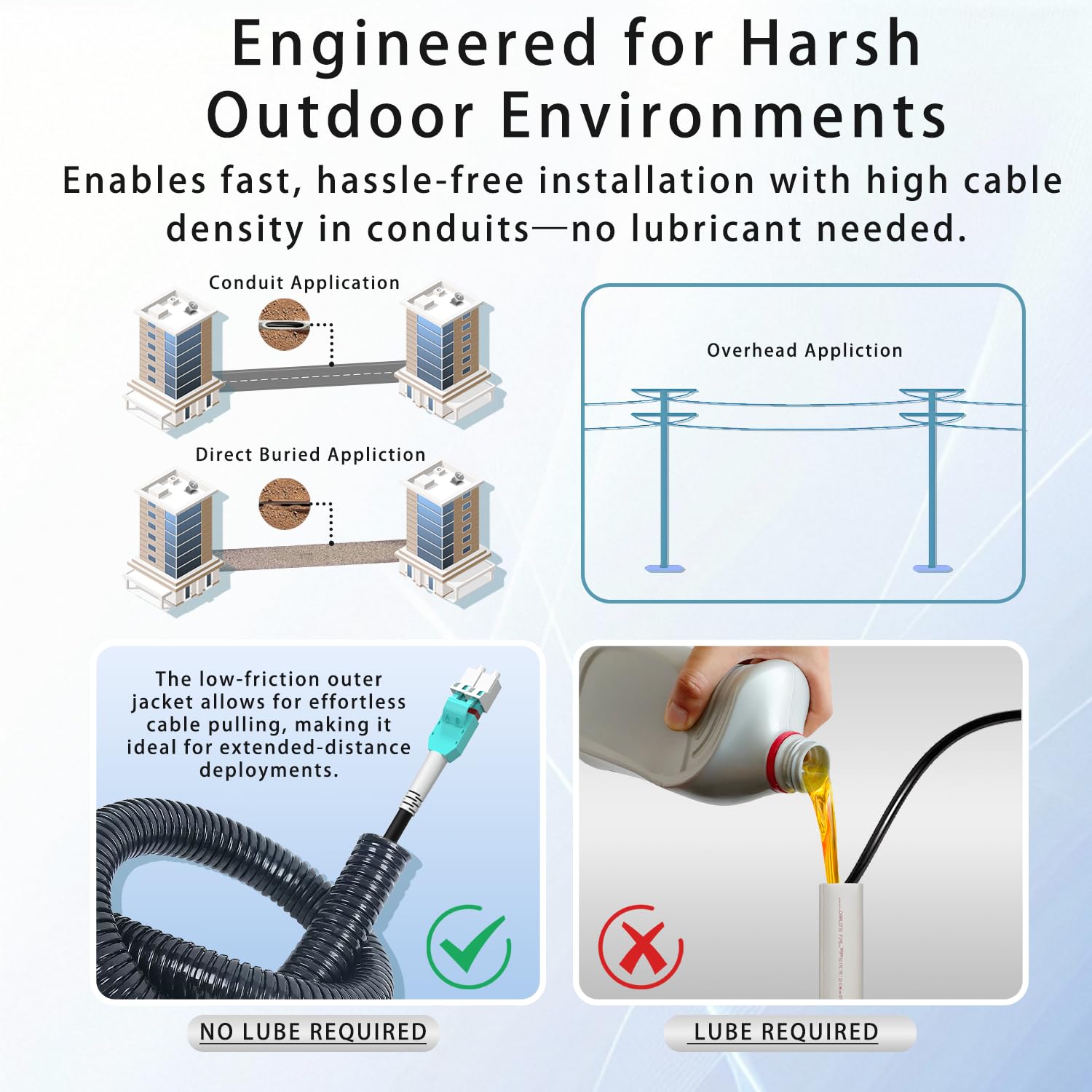 - Waterproof & Crush-Resistant: Designed to withstand up to 3000N of crush force and long-term tension of 200N the cable resists water ingress and external pressureideal for underground and conduit environments.