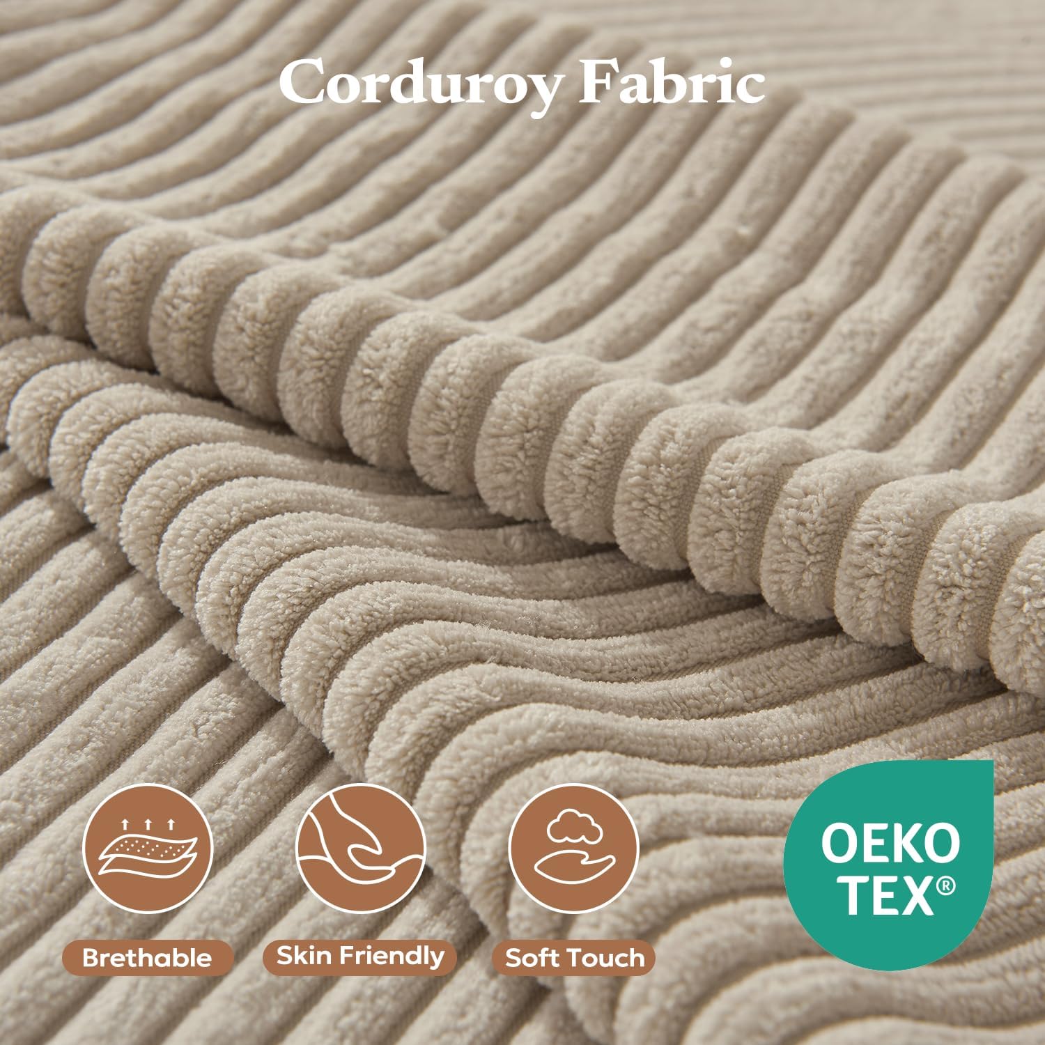 Corduroy Fabric: Indulge in the textured luxury of our premium corduroy upholstery, where exceptional softness meets practical elegance. The distinctive ridged weave creates a visually captivating surface that's remarkably durable while maintaining its refined appearance season after season. Certified by OEKO-TEX Standard 100 for safety and breathability, this versatile fabric combines inviting tactile warmth with timeless style for your living space