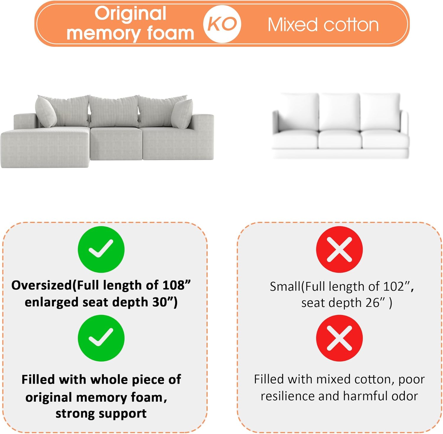 Oversized & Practical Dimensions:Extra - large size with extended depth. Offers a hugging seating experience, easy to move, and leaves no cleaning dead corners