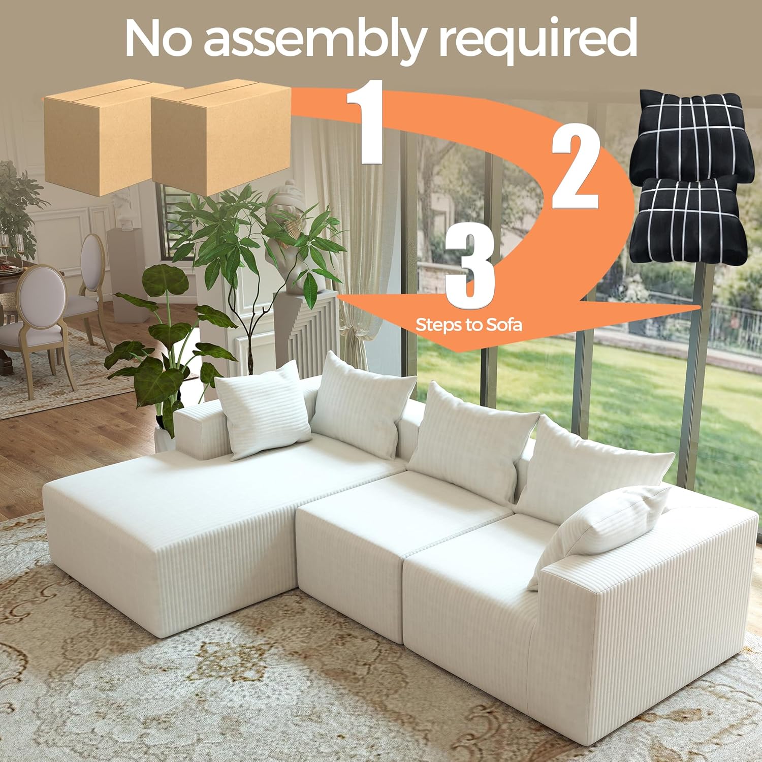 No Assembly Required:Compressed packaging design. Just unpack, gently pat, and it fully rebounds within 48-72 hours. Skips the trouble of traditional furniture assembly