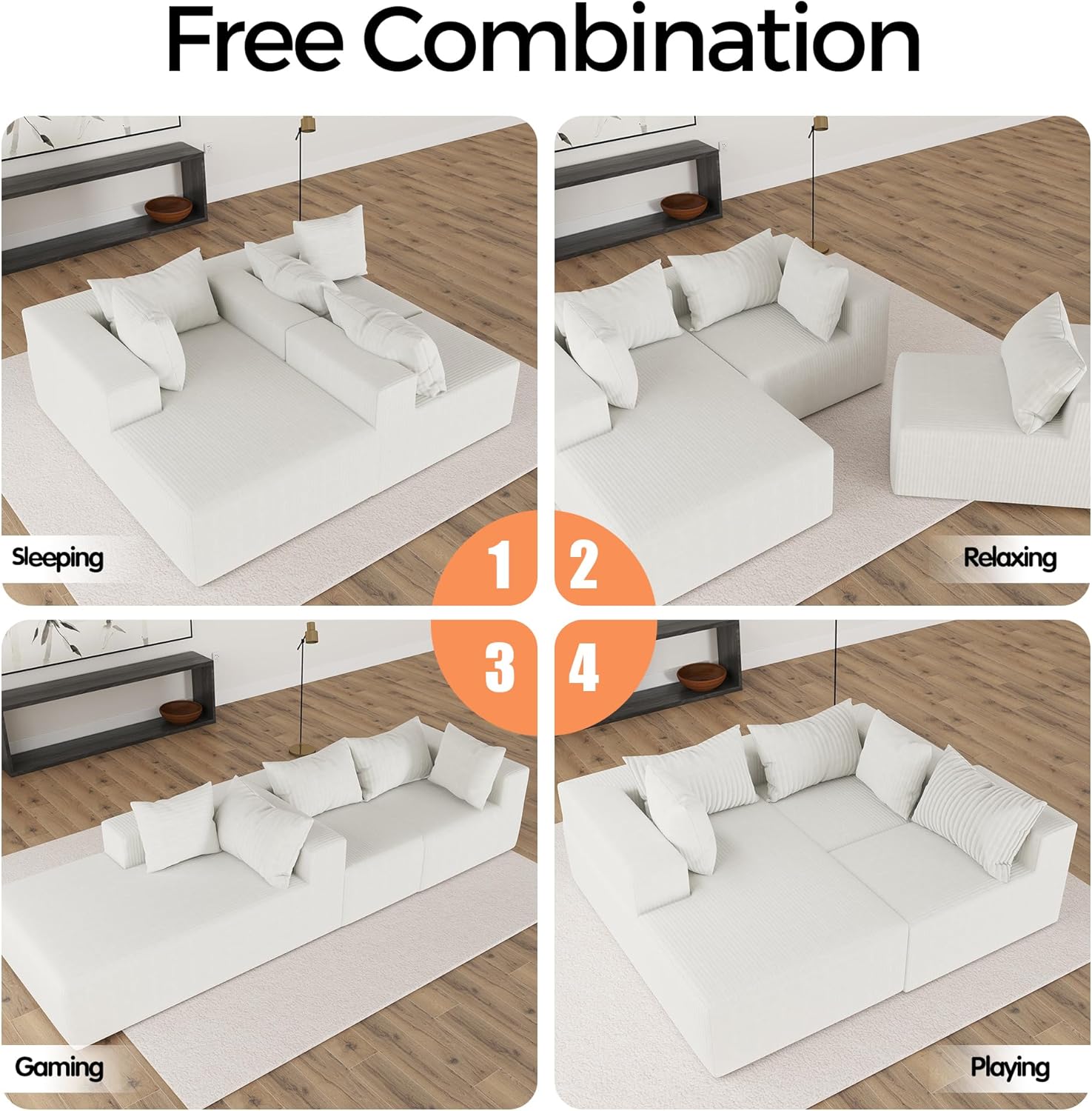 Flexible Combinations:Freely reconfigure to fit living rooms, apartments, bedrooms, guest rooms, or kids play areas. Reduces collision worries, adapts to diverse life scenarios