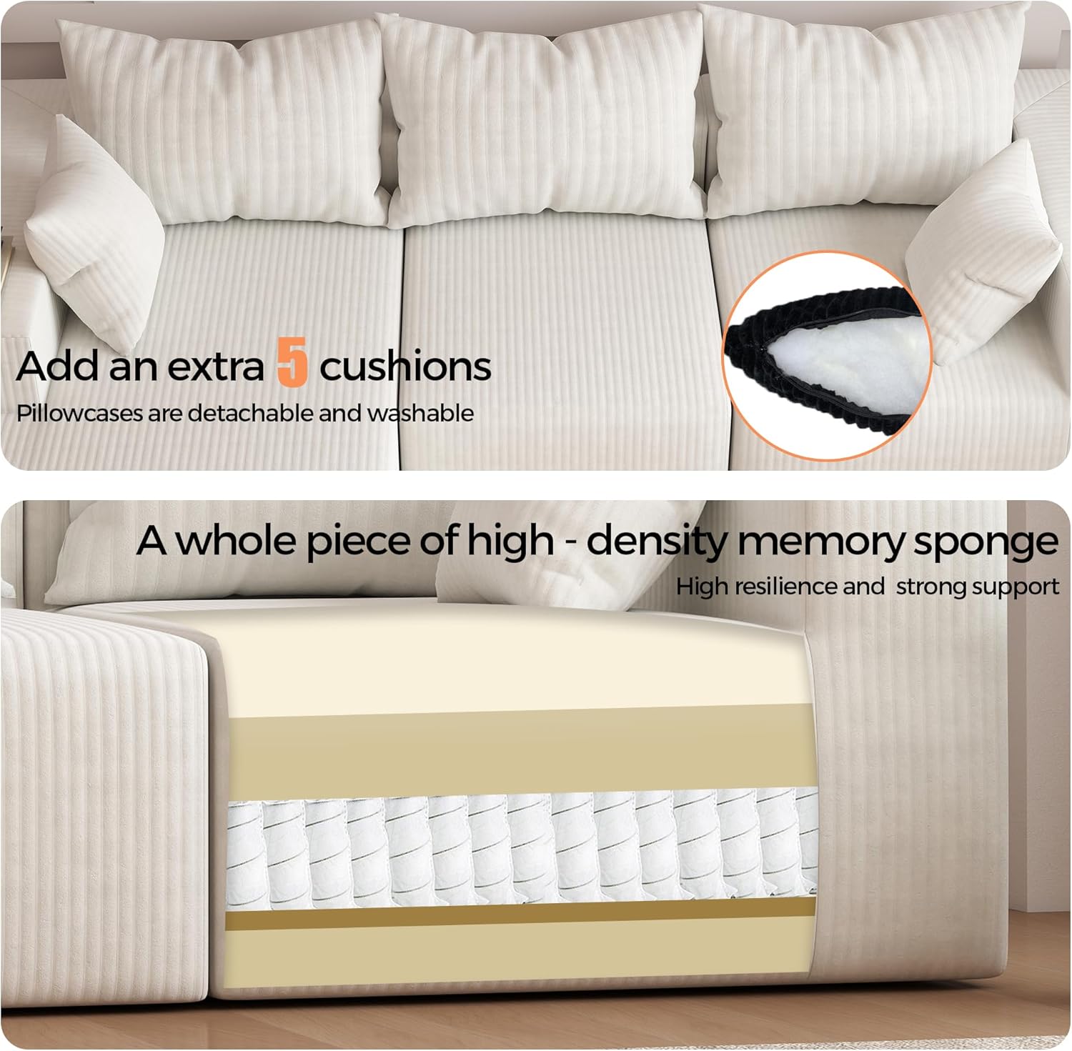 Premium & Comfort - Focused Materials:Filled with high - quality virgin sponge (safe & non - toxic) and reinforced by coil springs for a perfect, bouncy seating feel. Plush corduroy fabric is soft, skin - friendly, breathable, and pet - friendly (hardly sheds)