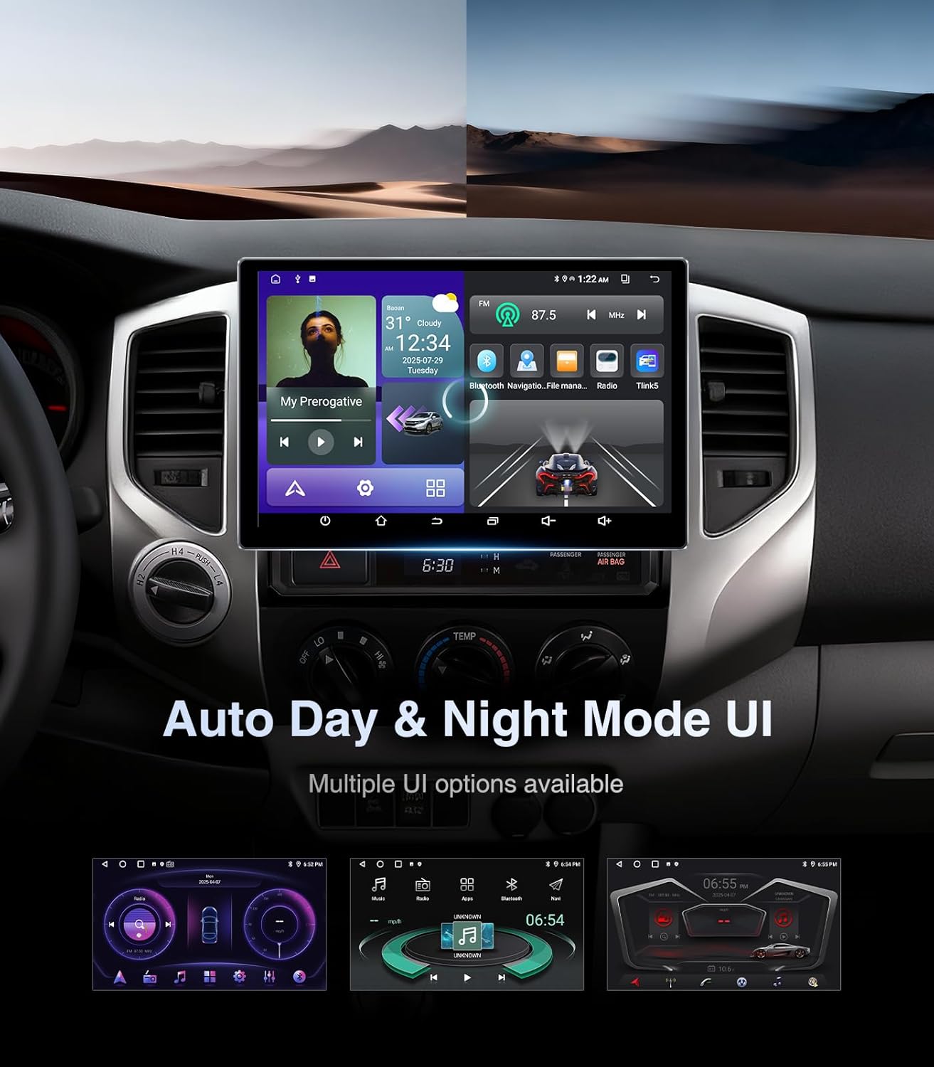 Day&Night UI SWC FM/AM RadioThe radio automatically switches between day and night UI modes when headlights open to match lighting conditions and reduce eye strain. Steering wheel control support allows safe operation without distractions. Built-in FM and AM radio provide reliable access to local music and news.