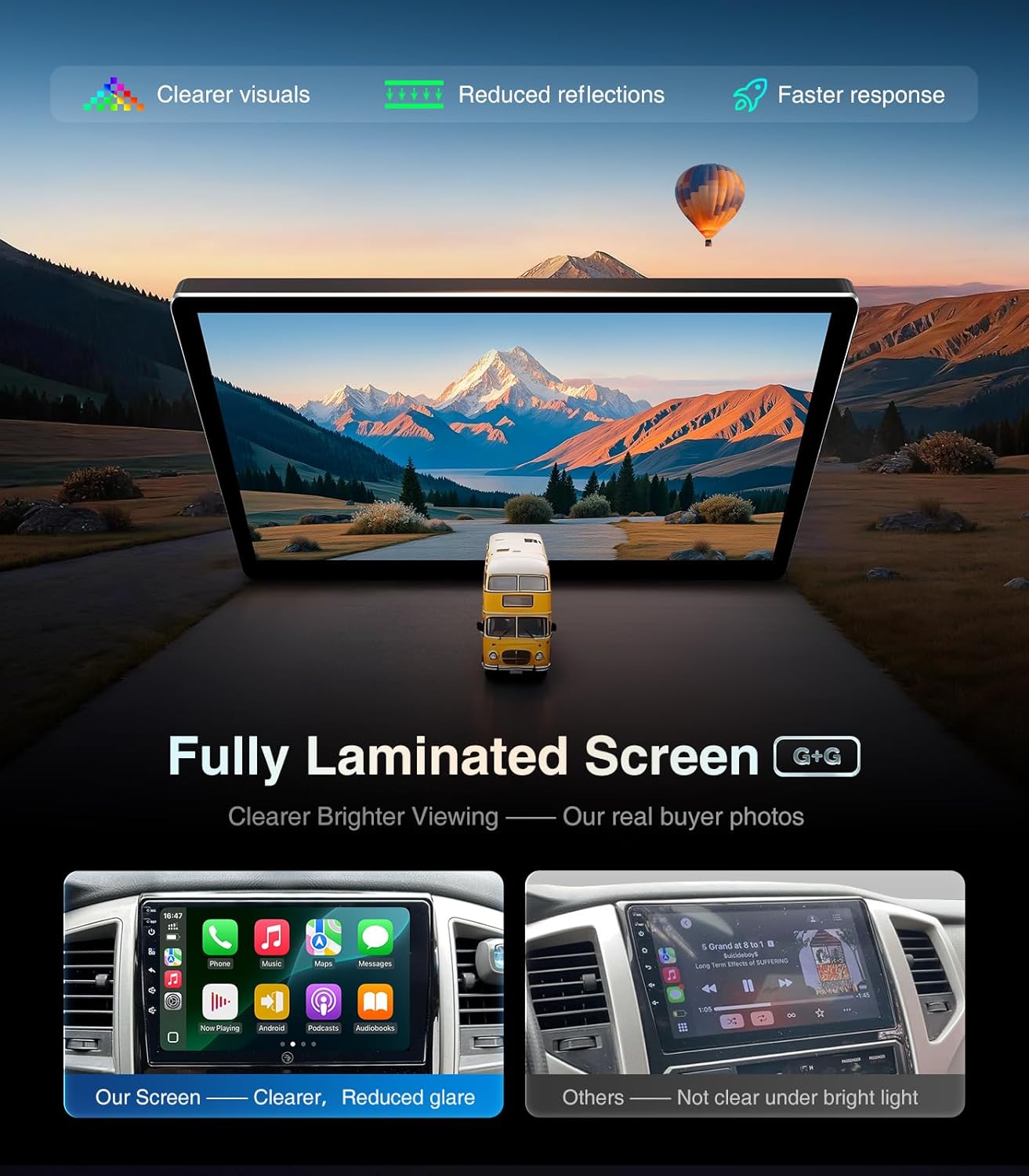 GPS Navigation 1080P Backup Camera & Split ScreenBuilt-in GPS navigation provides accurate route guidance while 1080P backup camera support improves reversing safety with clear rear views. Split screen function allows navigation and music or other apps to run simultaneously for improved driving convenience.