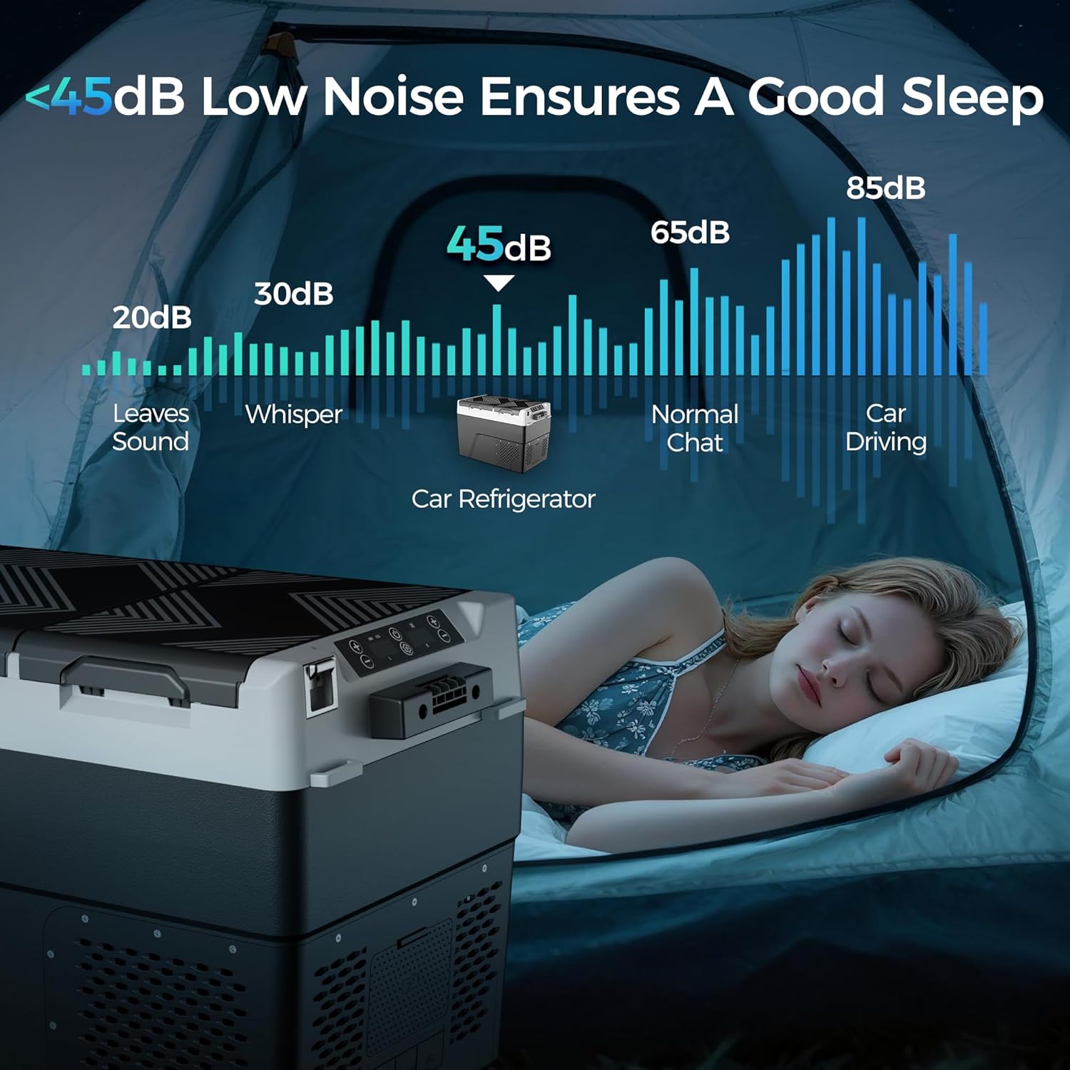 45dB Low Noise & Anti-Shaking: This 12v freezer has 4 fixing holes on both sides which can be firmly secured to the vehicle with ropesstaying stable even in 40 bumpy off-road conditions. The 45dB quiet technology ensures the 12 volt cooler wont disturb driving or rest keeping you safe and comfortable.