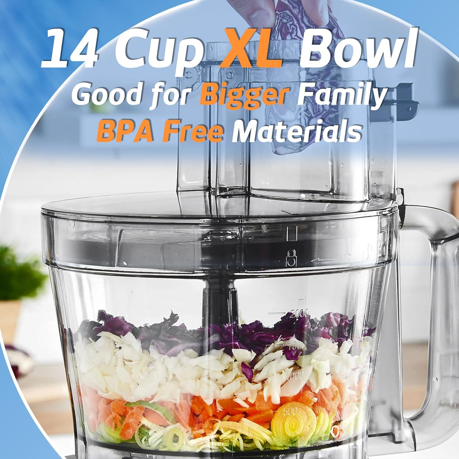 Integrated storage drawer No more hunting for blades! The 14-cup food processor has a built-in storage drawer right on the housing, so you can keep all your blades in one spot, safe and easy to grab when you need them.