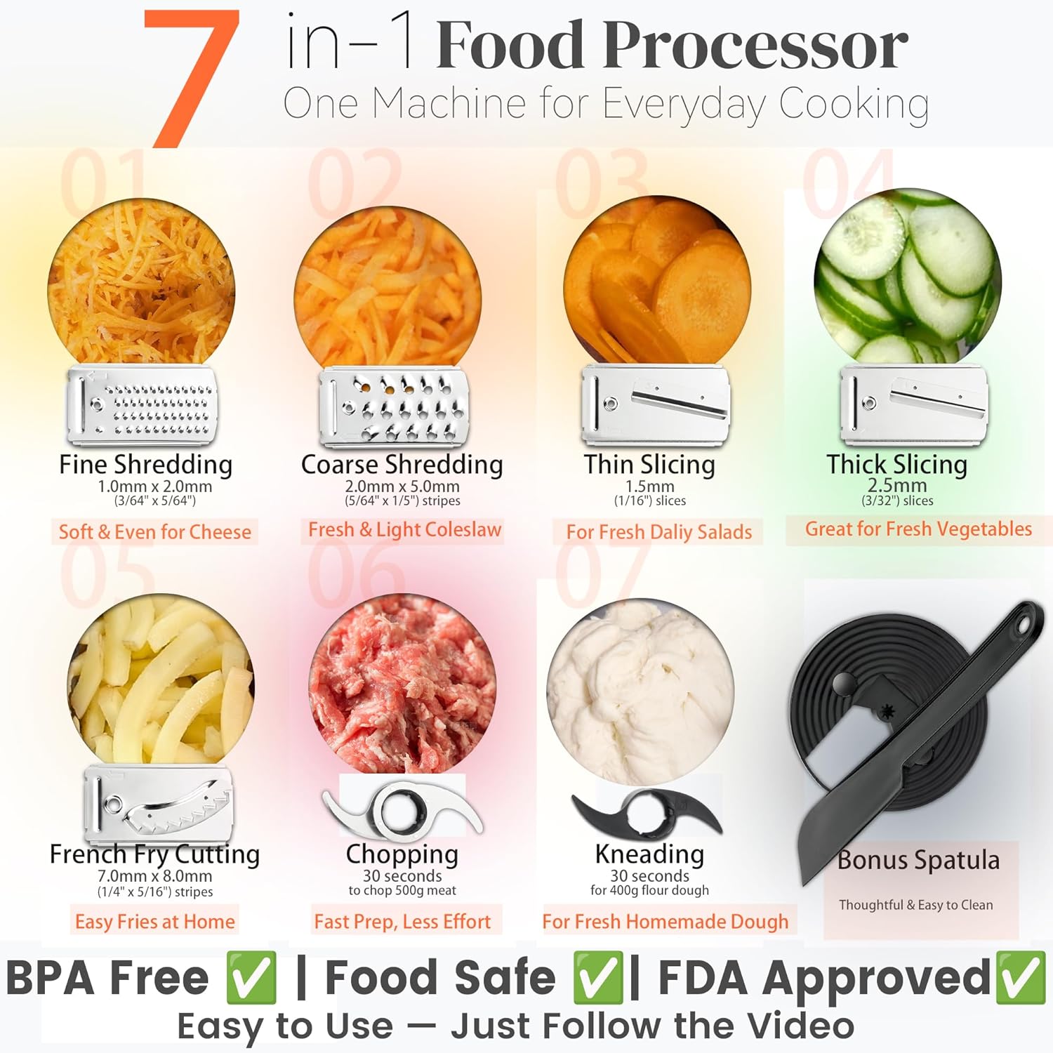 French Fry cutter blade Craving crispy fries? The food processor has a special chute just for cutting potatoes into fries. Its easy to pop in medium-sized potatoes and slice them into perfect fries. For longer fries, check out the demo video, and use the max speed for faster, more efficient cutting.