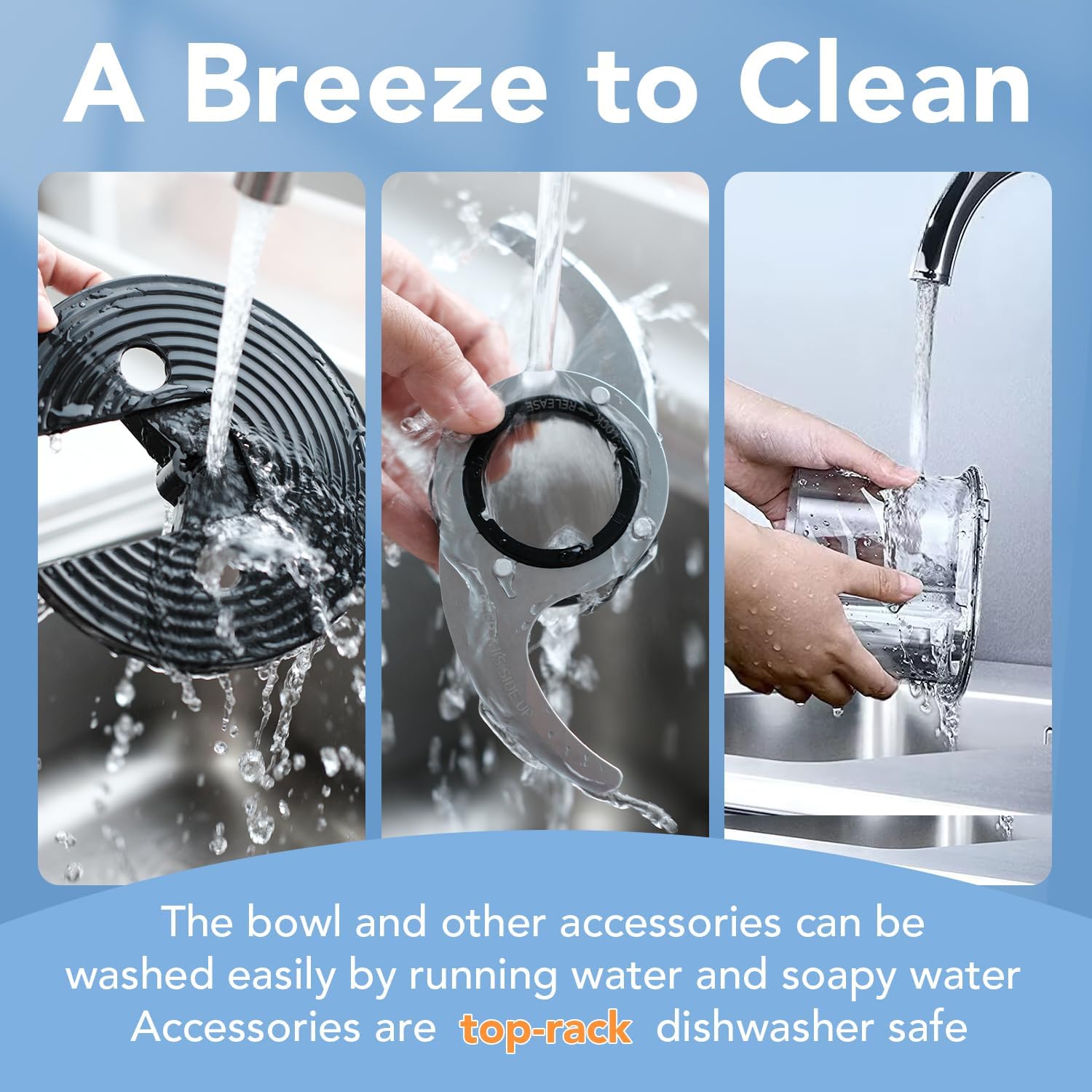Stainless steel wrapped housingThis food processor not only works great but looks great too! The sleek stainless steel-wrapped housing is easy to clean and adds a modern touch to your kitchen. Just remember to clean and dry the parts after use to prevent corrosion.