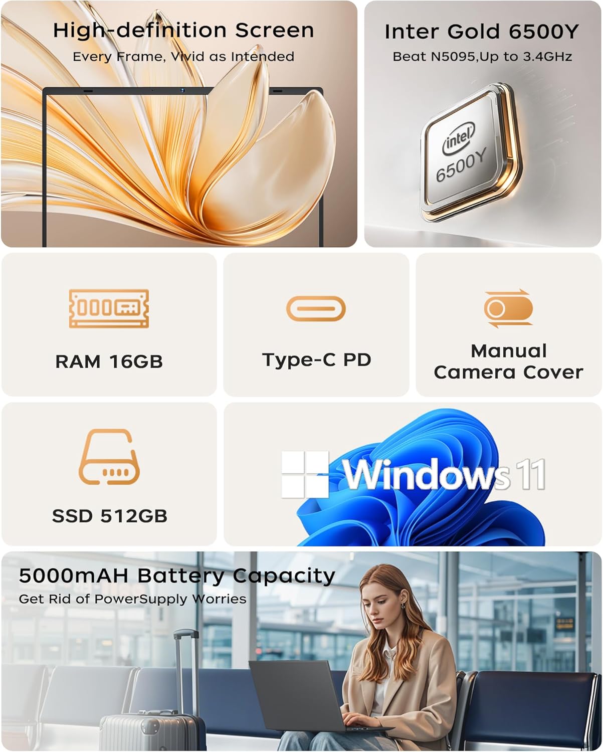 UPGRADED STORAGE SPACE - This Traditional Laptop Features 16GB RAM Expandable up to 32GB for faster system performance. It also comes with a High-Speed 512GB M.2 2280 SATA PCIE 3.0 SSD that supports NVMe providing ample space for storing system files. You can expand the storage up to 512GB using a TF card or upgrade the SSD to 4TB NVMe ensuring ample space for running most applications and multiple workflows.