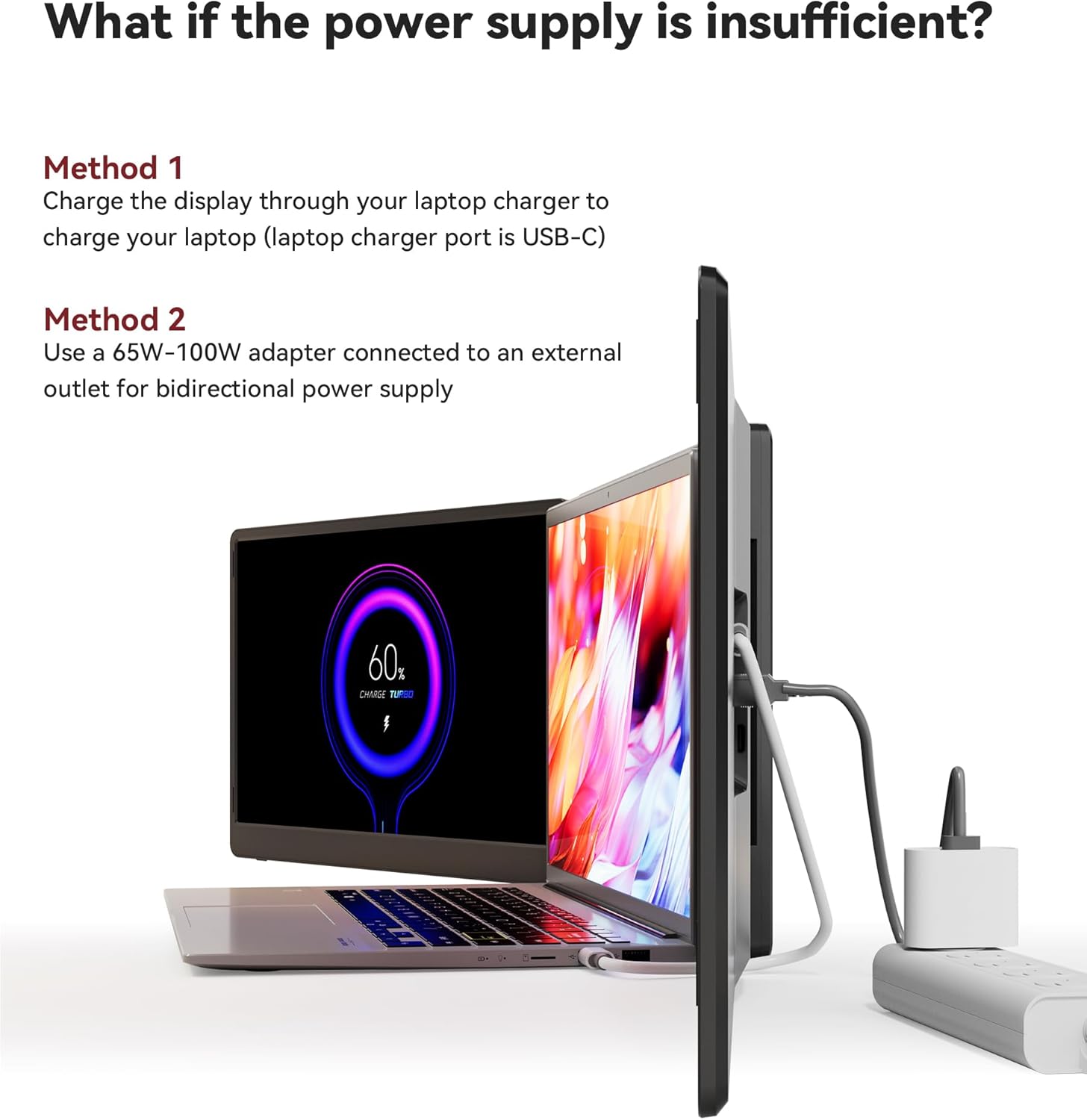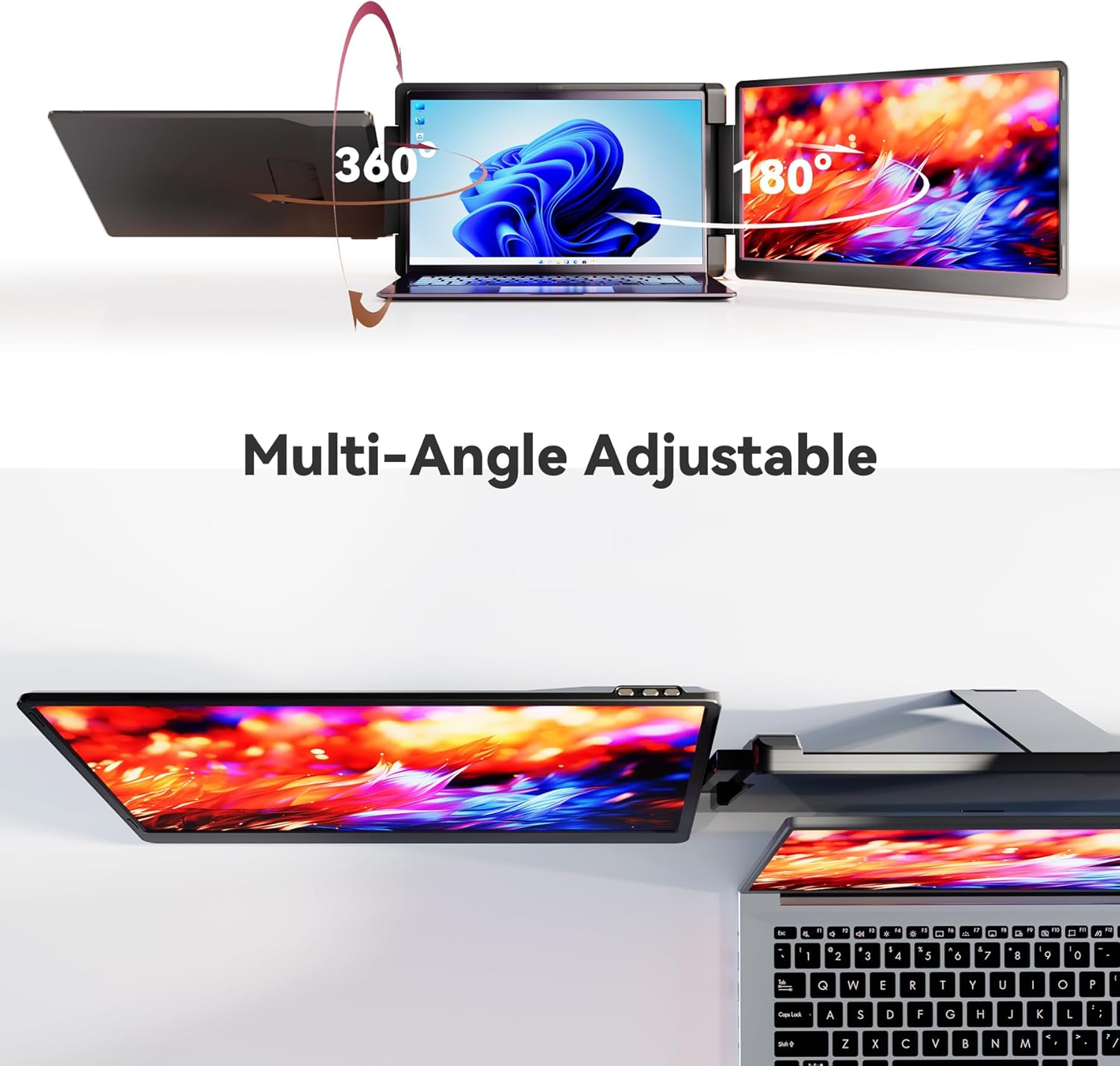 [Unique 360Rotatable Left Screen Design] The left screen of this laptop screen extender monitor portable supports manual 360rotation enabling unobstructed face-to-face communication and breaking free from the constraints of side-by-side office crowding. Note: Manual rotation of the left screen is requiredit does not rotate automatically.