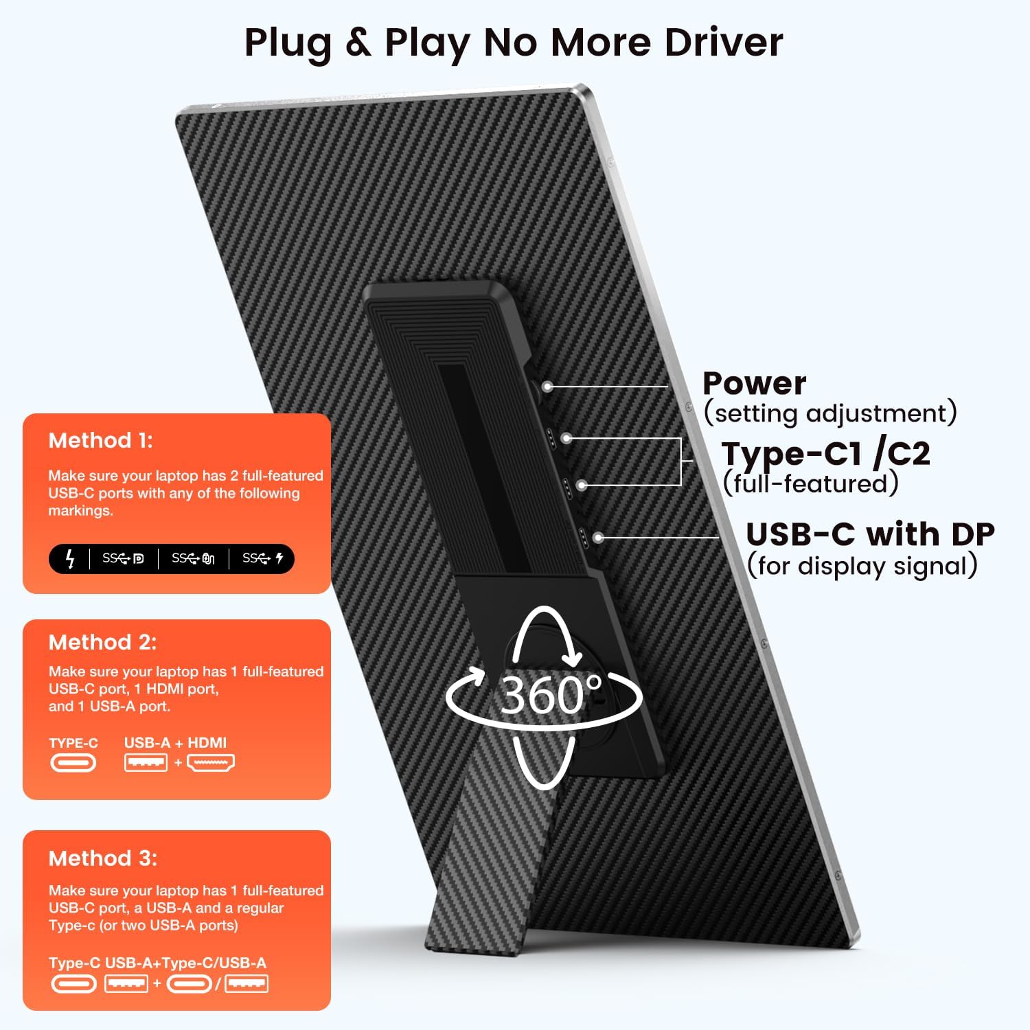 [Wide Compatibility] This laptop monitor extender is widely compatible with Windows MacOS Chrome and Dex systems. For MacBook with M1 M2 or M3 chips and some laptops with only single screen display due to compatibility issues please use the included H5 hub to connect the "USB C with DP" port of the second screen and then use an extra USB-A to USB-C cable to power the "Type C" port of that screen download the driver as prompted(Driver is required only when using H5 HUB.)