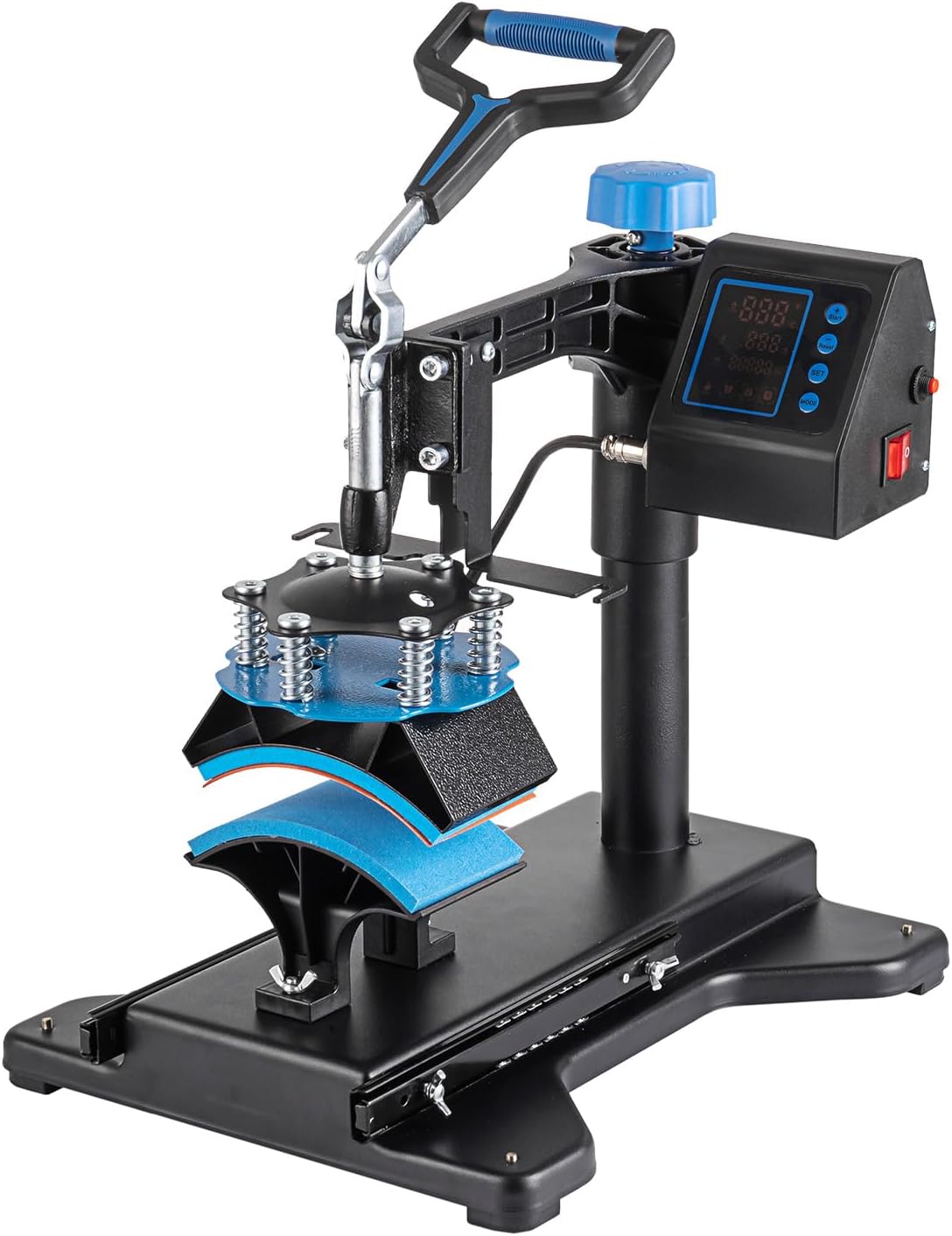 This heat press has all the necessary accessories to meet your business needs. Include: 1 x fully-assembled machine with platen press; 1 x Hat press 5.5"x 3"(Flat); 4 x Mug press(6oz-17oz); Plate Press #1: 5" Max Diameter; Plate Press #2: 6" Max Diameter; 1 x User Manual.