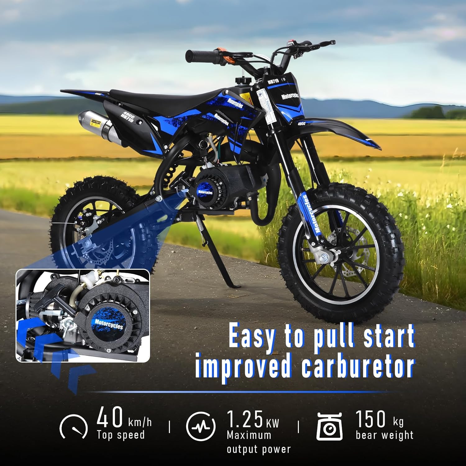 Easy Pull Start: This kids dirt bike features an easy pull start function allowing children to begin riding with minimal effort. Even very young children can quickly and easily start and ride. It is faster has greater torque is more reliable and is simpler to set up and start.