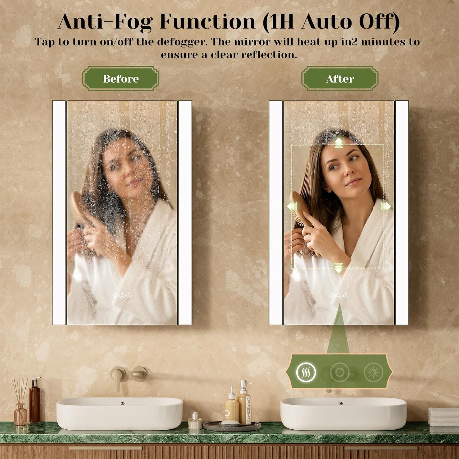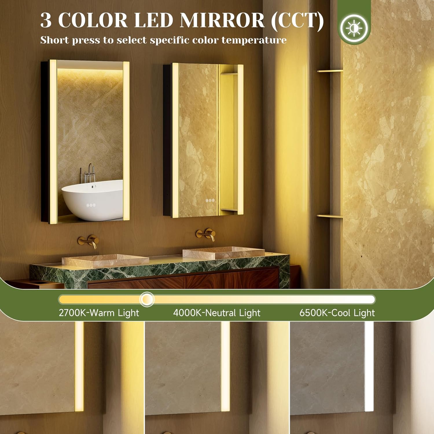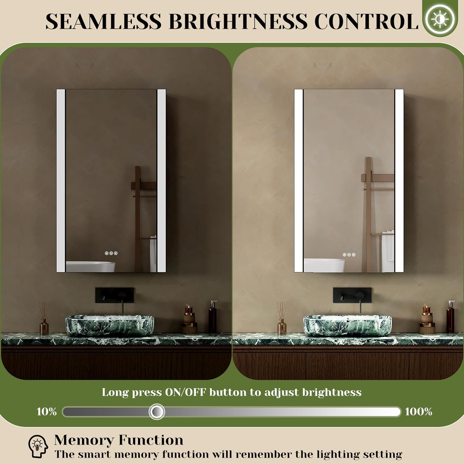 Anti-Fog & Memory Function - Enjoy a clear mirror instantly of Acemiro LEHkcvv lighted medicine cabinet even after a hot shower thanks to the built-in anti-fog function. The smart memory feature automatically saves your last light setting offering personalized convenience every time you use this modern medicine cabinet with lights.
