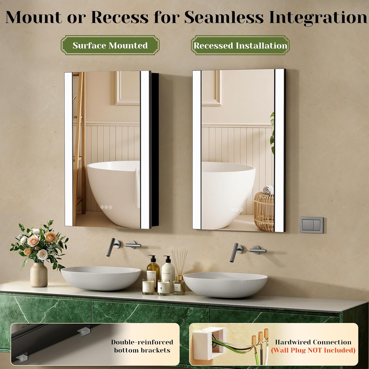 Recessed or Surface Mount - This versatile bathroom medicine cabinet offers flexible installation to suit your space. Choose a sleek built-in look with recessed mounting or a classic wall-mounted style. Complete hardware and clear instructions are included for a straightforward setup to enable a quickly and firmly installation of the medicine cabinet with mirror.