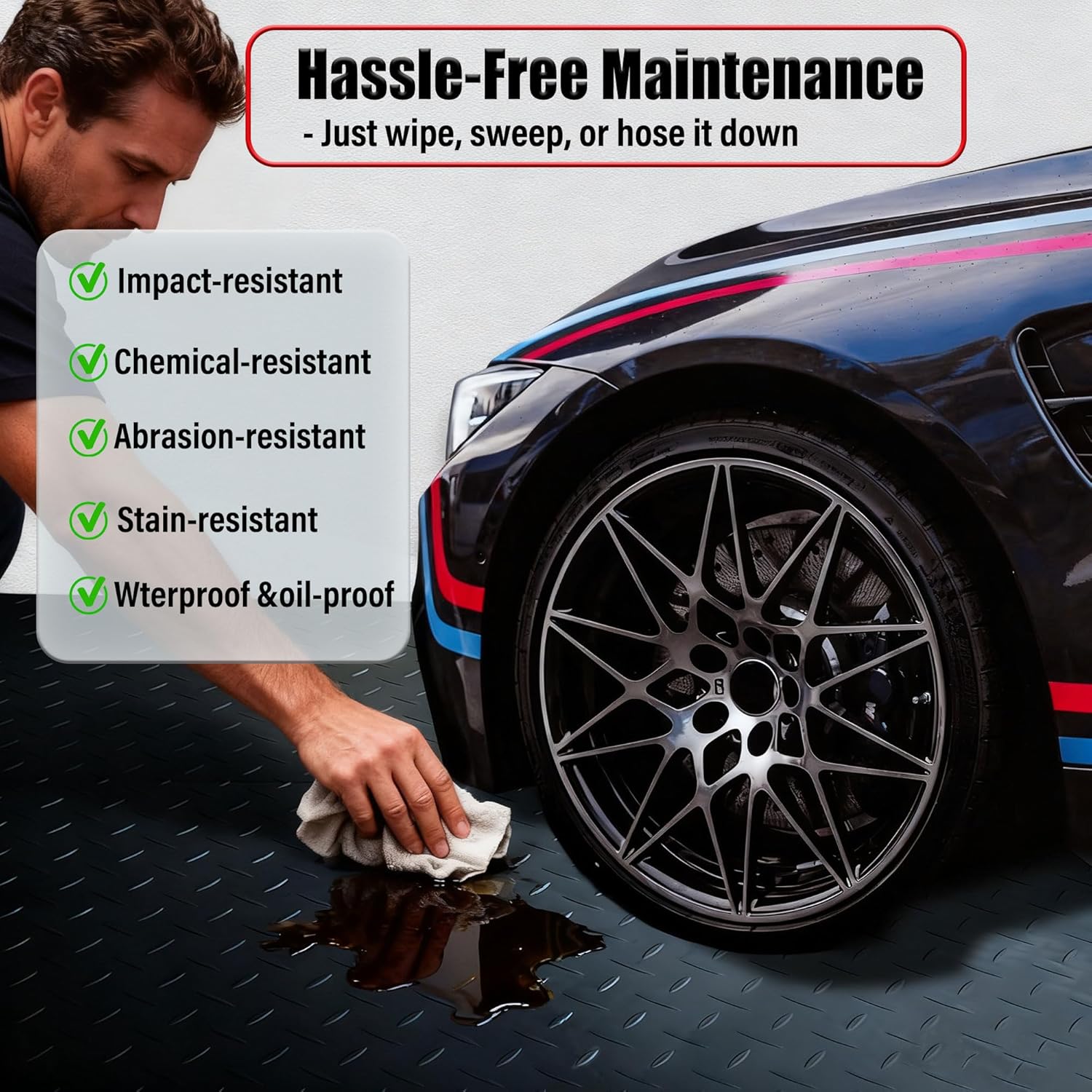 Effortless Cleaning & Maintenance: The stain-resistant surface makes cleaning a breeze.Mops or wet cloths can easily remove car oil grease and dirt
