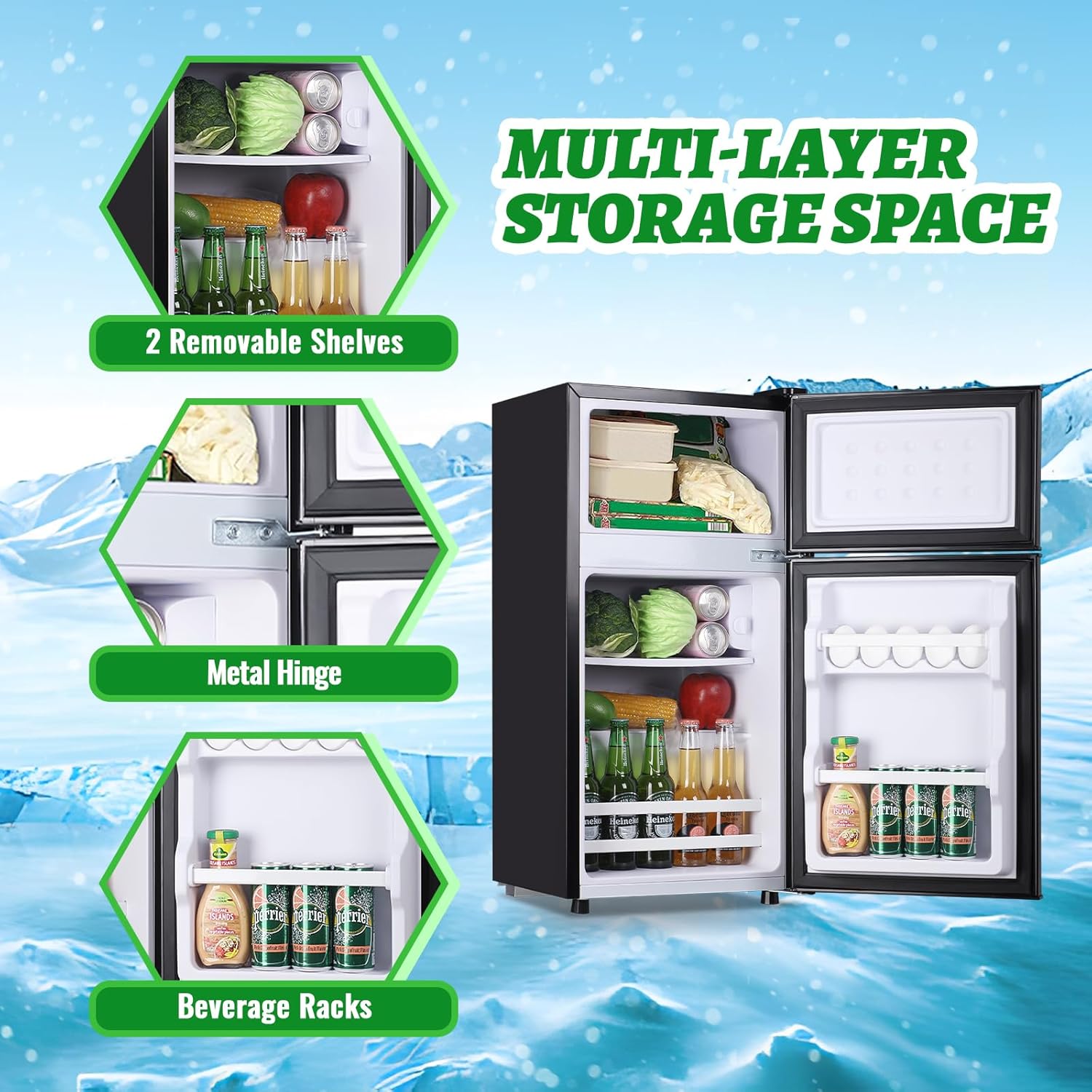 Quiet Operation and Convenience: Designed with low noise technology this mini fridge operates quietly making it perfect for shared spaces. It includes practical features like an egg tray removable shelves and ample space for beverages. These conveniences make it adaptable to your lifestyle providing a seamless cooling experience without disruption