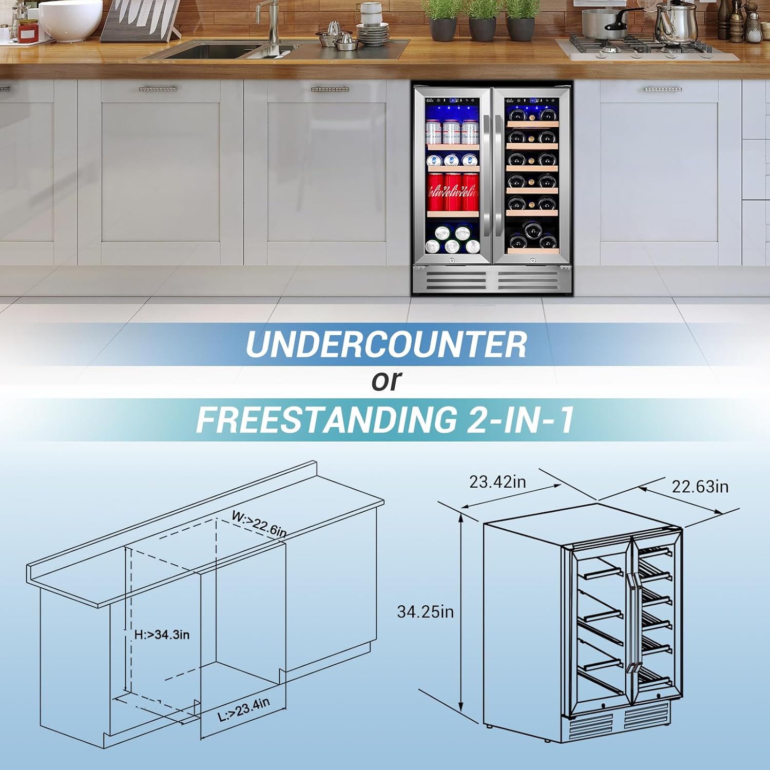 Smart Space Design- Built-in beverage refrigerator fits standard cabinets (23.4'' x 23.6'' x 34.2'') with sleek stainless steel door. Host game nights effortlessly: roll it to the living room or garage party!
