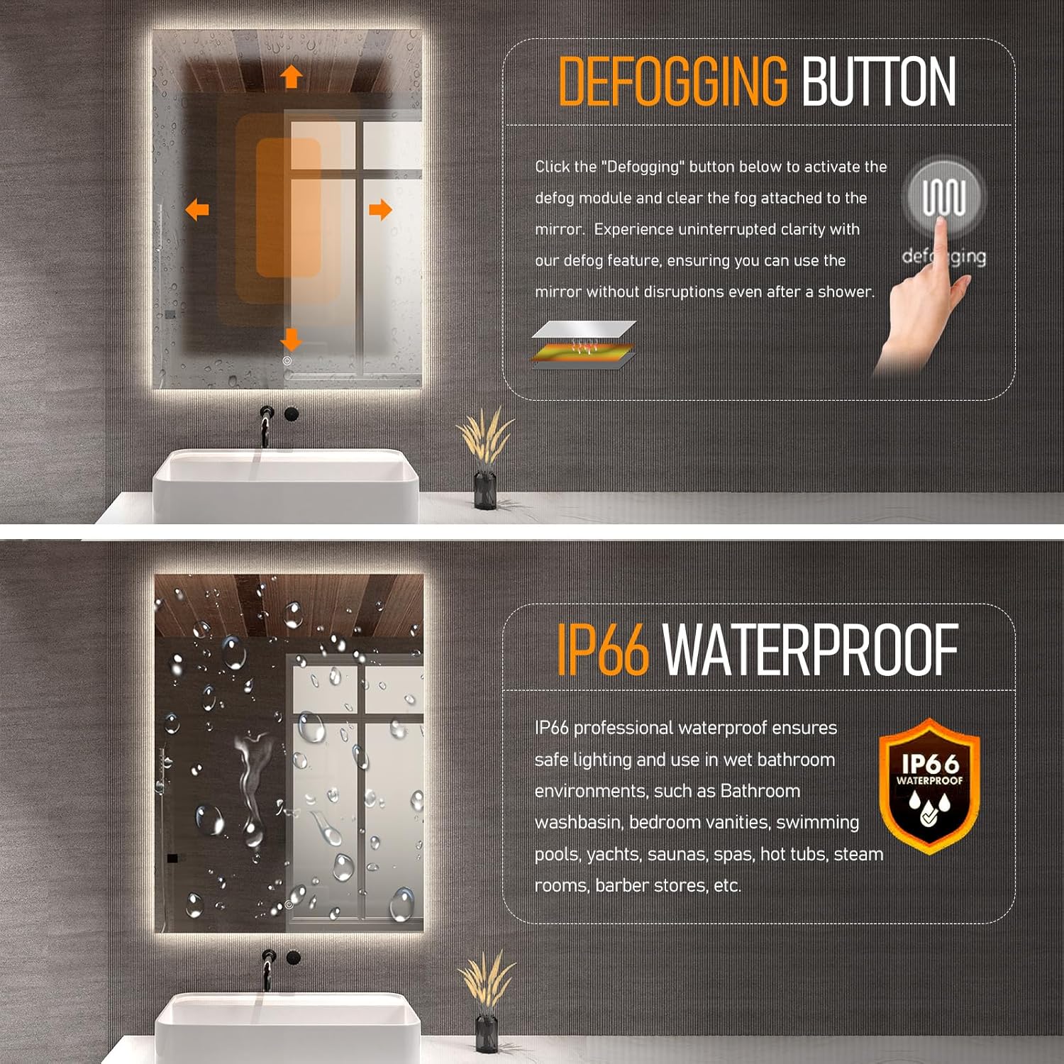 Advanced Hkcvvesign and Functionality: The mirror's embedded display design provides a dual function of mirror and display offering a high-definition viewing experience. It is equipped with an IP66 waterproof rating safe voltage operation and convenient installation with various interfaces available.