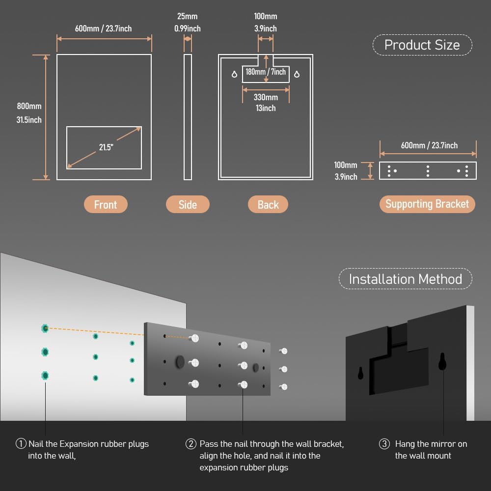 Warranty and Support: The product comes with mounting brackets instructions for easy installation and a 1-year warranty. For any assistance prompt customer support is available ensuring a hassle-free experience with the smart vanity mirror.