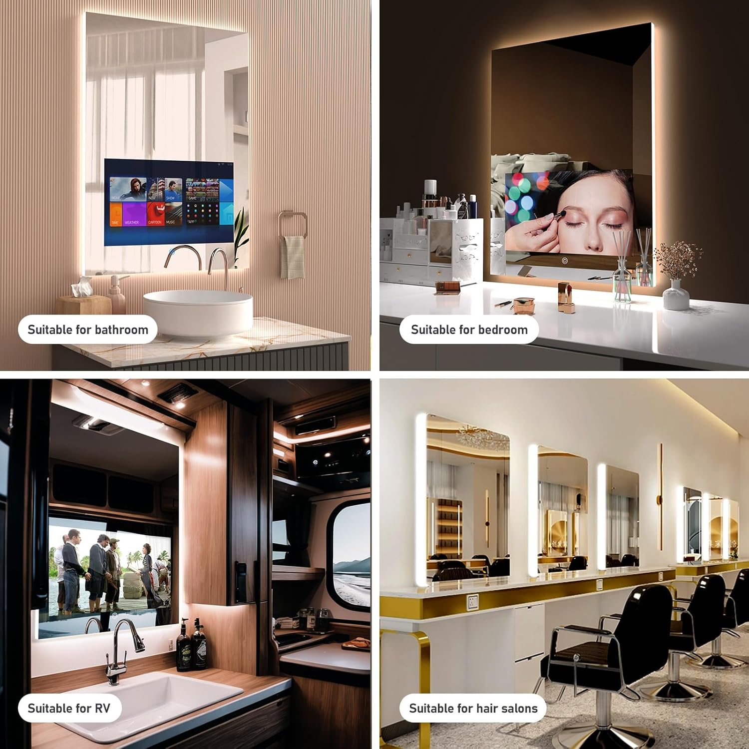 Entertainment and Utility: Ideal for busy lifestyles the mirror allows you to watch live TV catch up on news follow makeup tutorials and seamlessly stream content from apps like YouTube and Netflix.