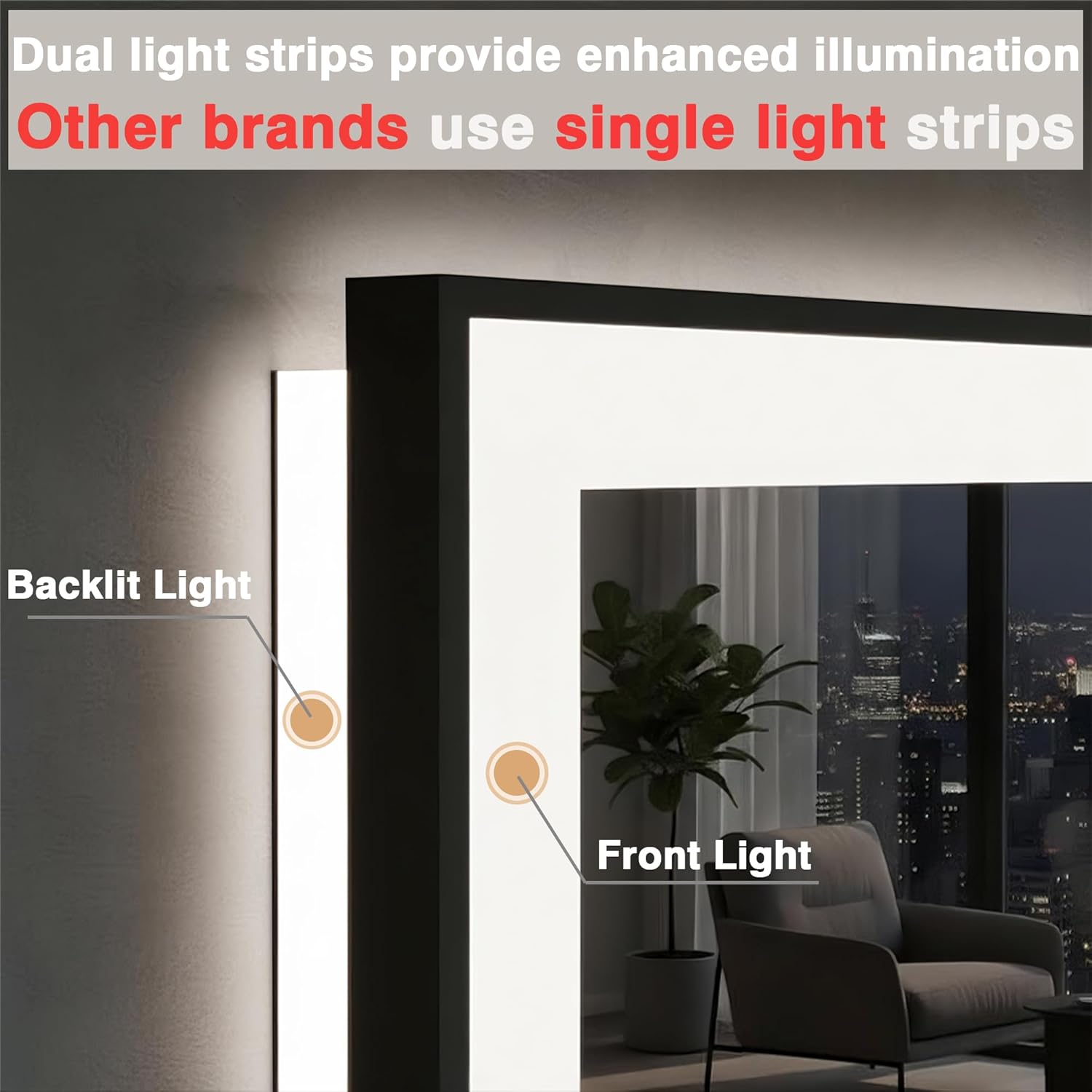 • 30x36 LEHkcvv Bathroom Mirror with Lights - Black Framed Front and Backlit Mirror Anti-Fog Vanity Mirror with Lights Stepless Hkcvvimmable LEHkcvv Mirror 3 Colors Smart(Horizontal/Vertical)