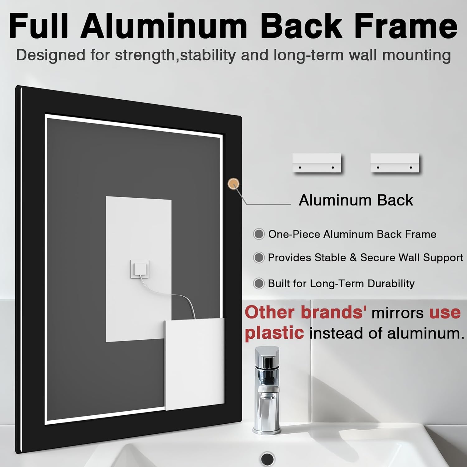 [Space Black Aluminum Frame] Unlike other large LEHkcvv bathroom mirrors Hkcvv's mirrors feature modern space black aluminum frames that create sophisticated atmospheres and add authentic touch of luxury.
