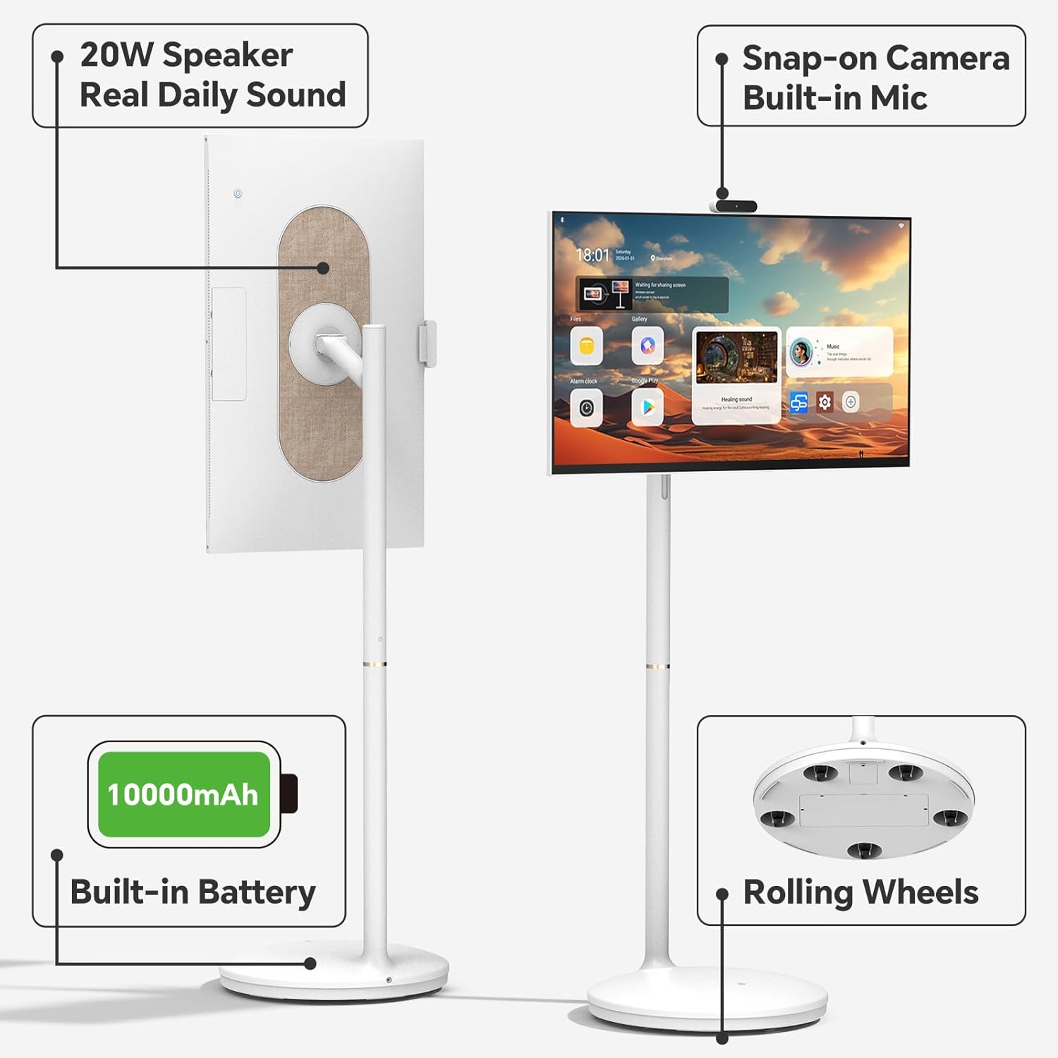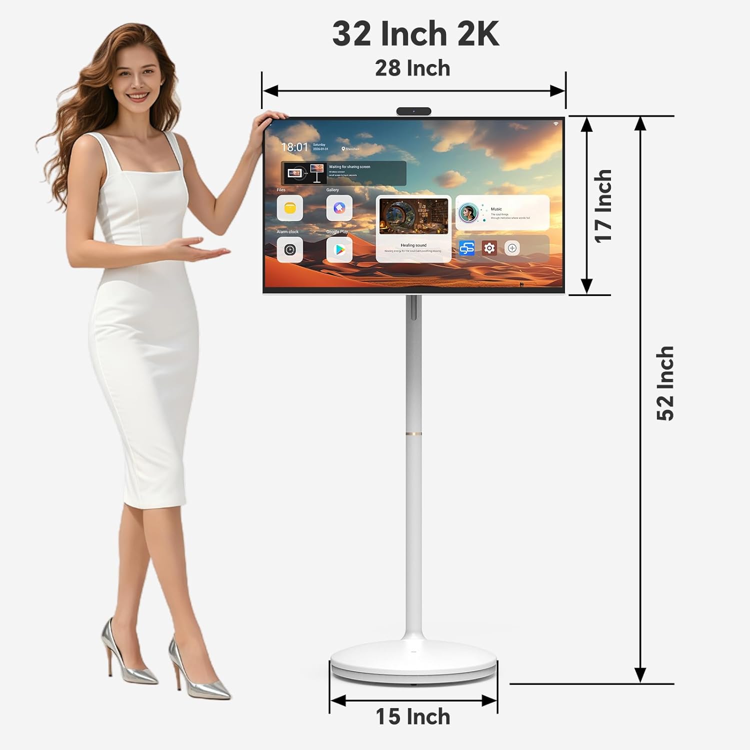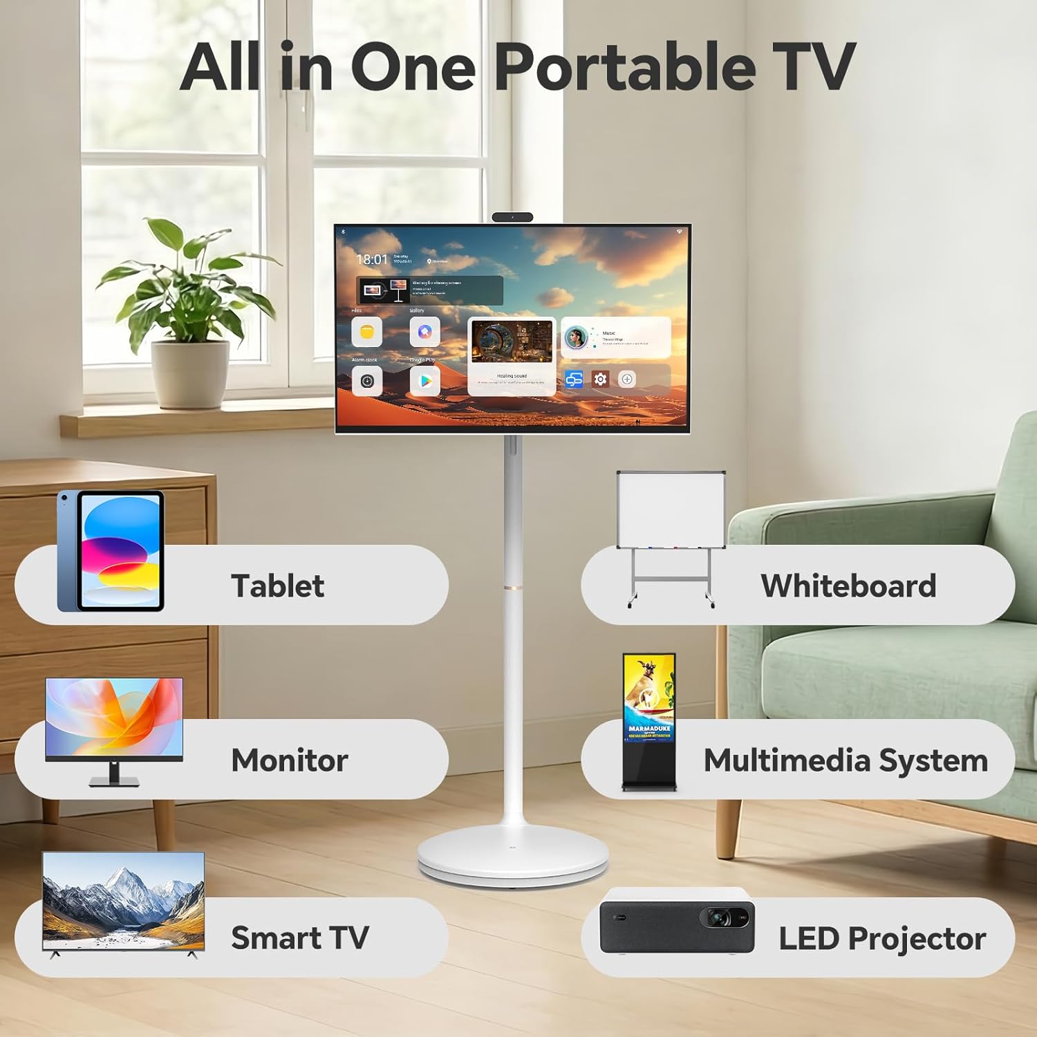 Built as a Complete System Not a DIY Rolling Screen: This flagship 32 smart portable TV is engineered as a fully integrated system not a mix-and-match setup. The QHD 2K touchscreen base-integrated battery magnetic snap-on 8MP camera with built-in microphone speakers and mobile stand are all designed to work together seamlesslydelivering a clean professional experience right out of the box