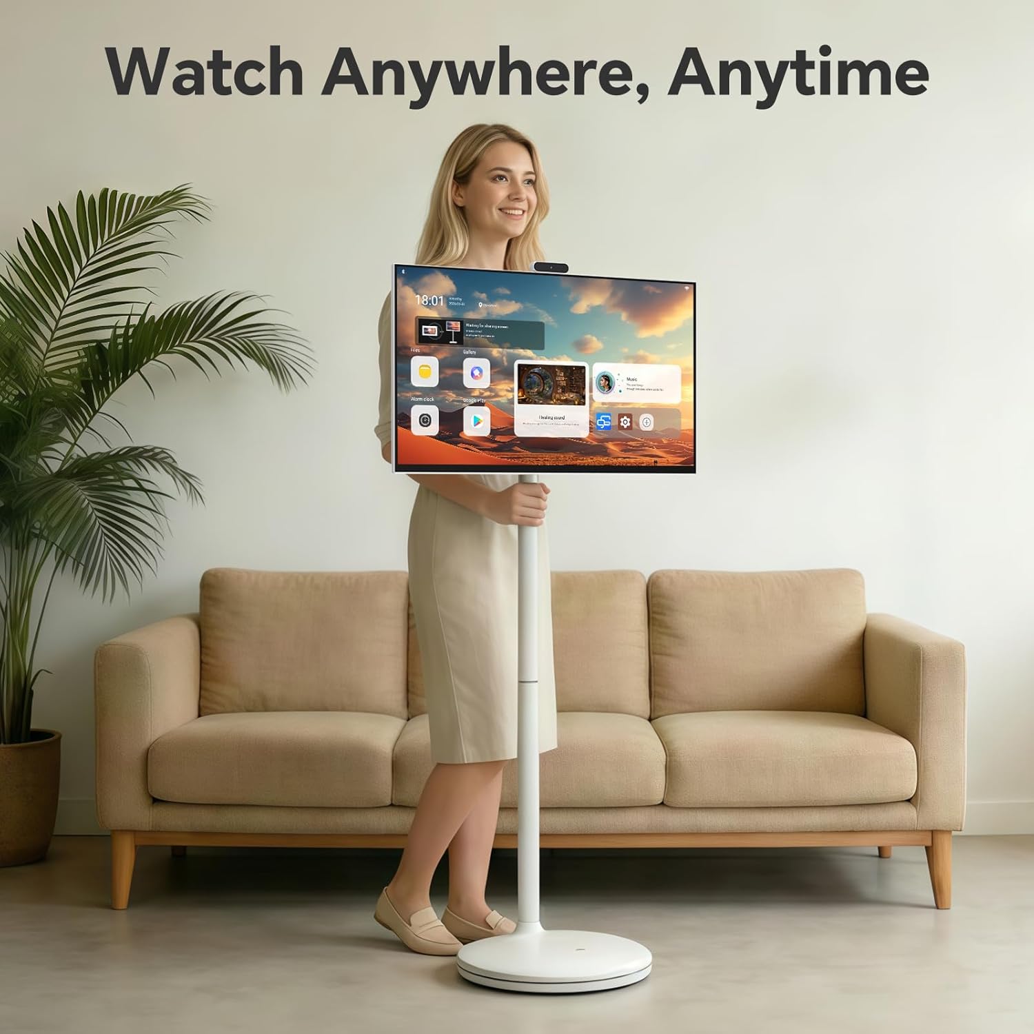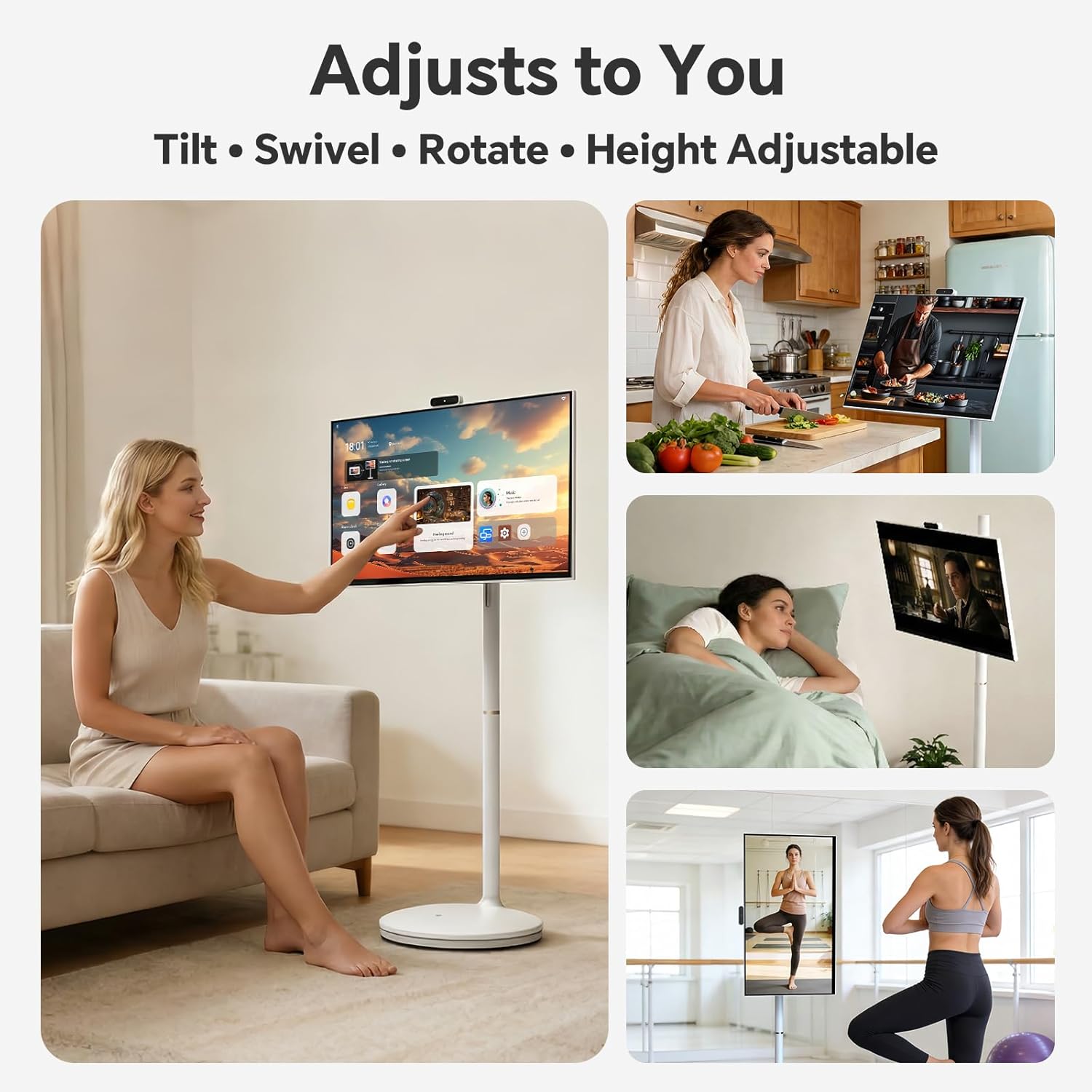 Designed for Real Life: Entertainment Work and Daily Interaction: From streaming movies and following recipes to video calls presentations and live streaming this the portable tv on wheels adapts effortlessly to living rooms kitchens bedrooms home offices and studios. Built for frequent touch interaction not occasional viewing