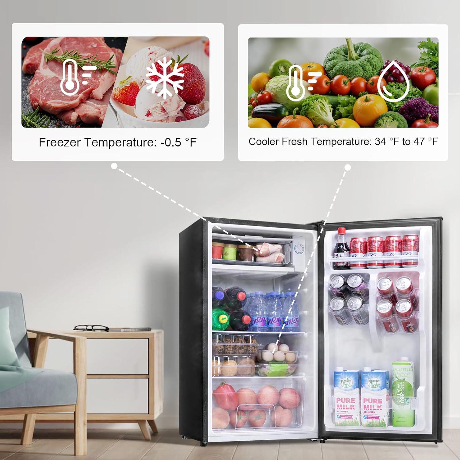 3.2 Cu Ft Mini Fridge with Freezer - Energy Efficient Large Capacity Single Door Upright Freezer for Bedroom Office & Dorm | Small Fridge Reversible Door ETL Certified