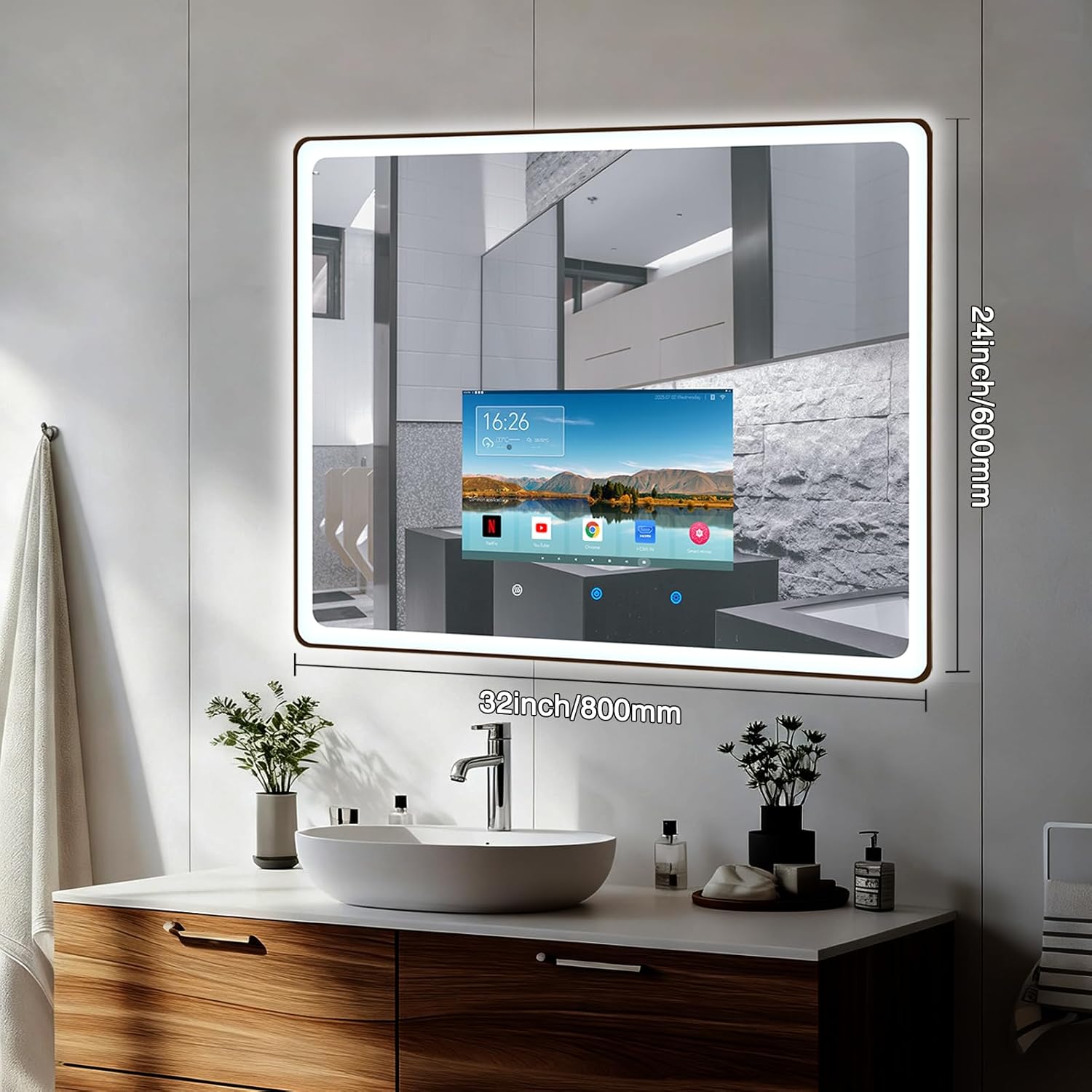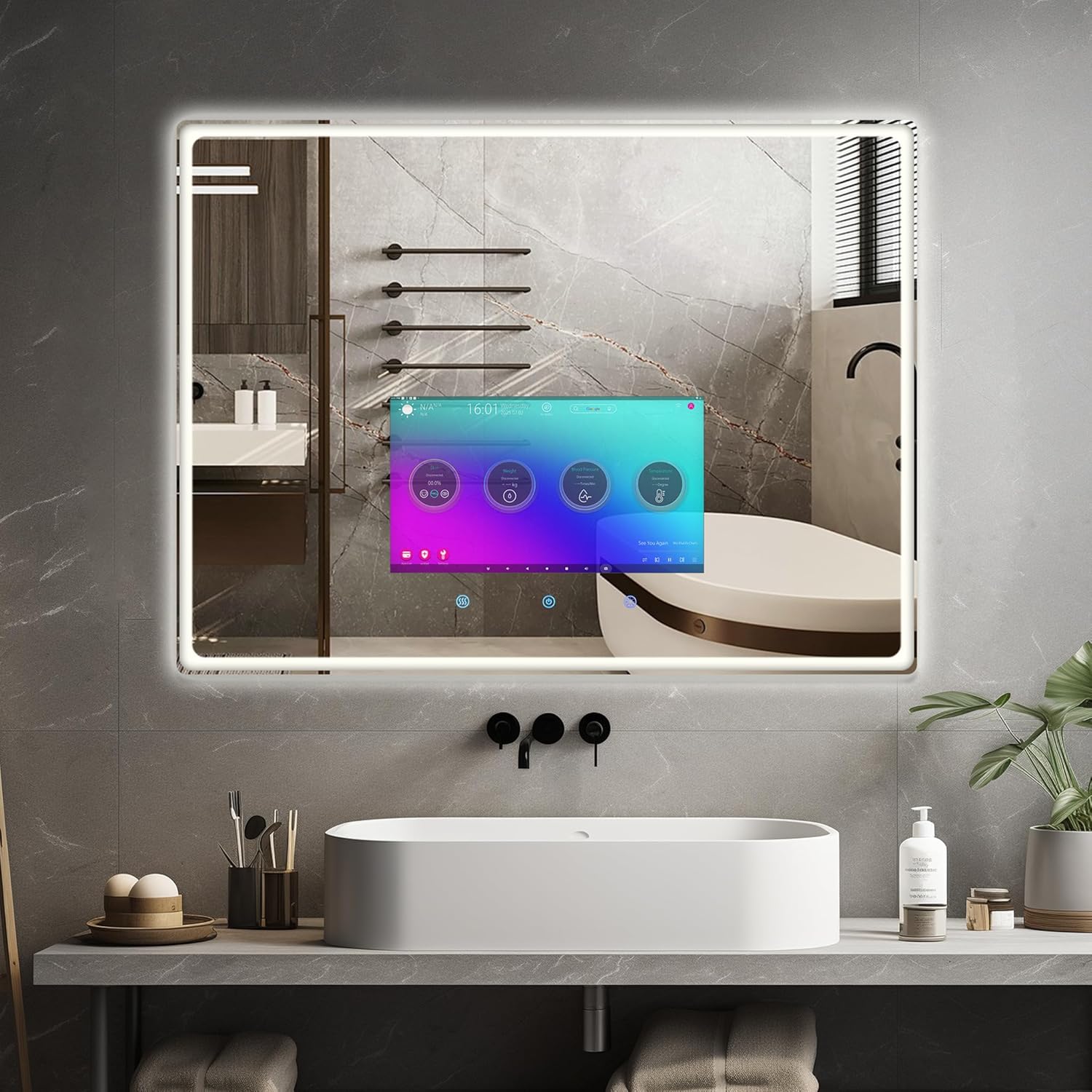 【LEHkcvv Fill Light + Hkcvvefogging Function】 Three-color adjustable LEHkcvv light strips (warm light/natural light/cold light) with brightness adjustable from 10% to 100% meet different needs such as makeup shaving and washing. The defogging function ensures the mirror remains clear after a shower. Separate touch switches make operation more convenient.