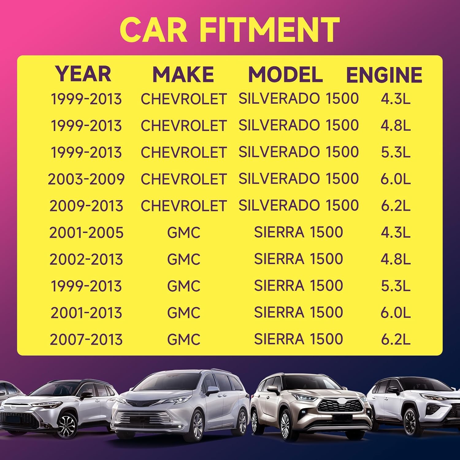 FITMENT2Radiator Compatible with Chevy Silverado 3500 6.0L 2001-2006 2008-2010Silverado 3500 Classic 6.0L 2007Silverado 3500 HD 6.0L 2007-2010Sonora 5.3L 2003-2006Suburban 5.3L 2014Suburban 1500 5.3L 2000-2014Suburban 1500 6.0L 2006-2009Suburban 2500 6.0L 2000-2013Tahoe 4.8L 2000-2009Tahoe 5.3L 2000-2014Tahoe 6.2L 2008-2009 GMC Sierra 5.3L 2007-2013 Sierra 6.2L 2008-2013 Sierra 1500 4.3L 2001-2005 Sierra 1500 4.8L 2002-2013 Sierra 1500 5.3L 1999-2013 Sierra 1500 6.0L 2001-2013 Sierra 1500 6.2L 2007-2013Yukon 6.0L 2001-2006 Yukon 6.2L 2007-2014 Yukon XL 1500 5.3L 2000-2014 Yukon XL 1500 6.0L 2001-2009 Yukon XL 1500 6.2L 2007-2014 Yukon XL 2500 6.0L 2000-2013