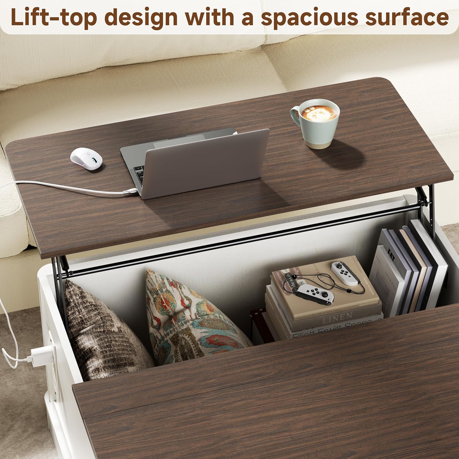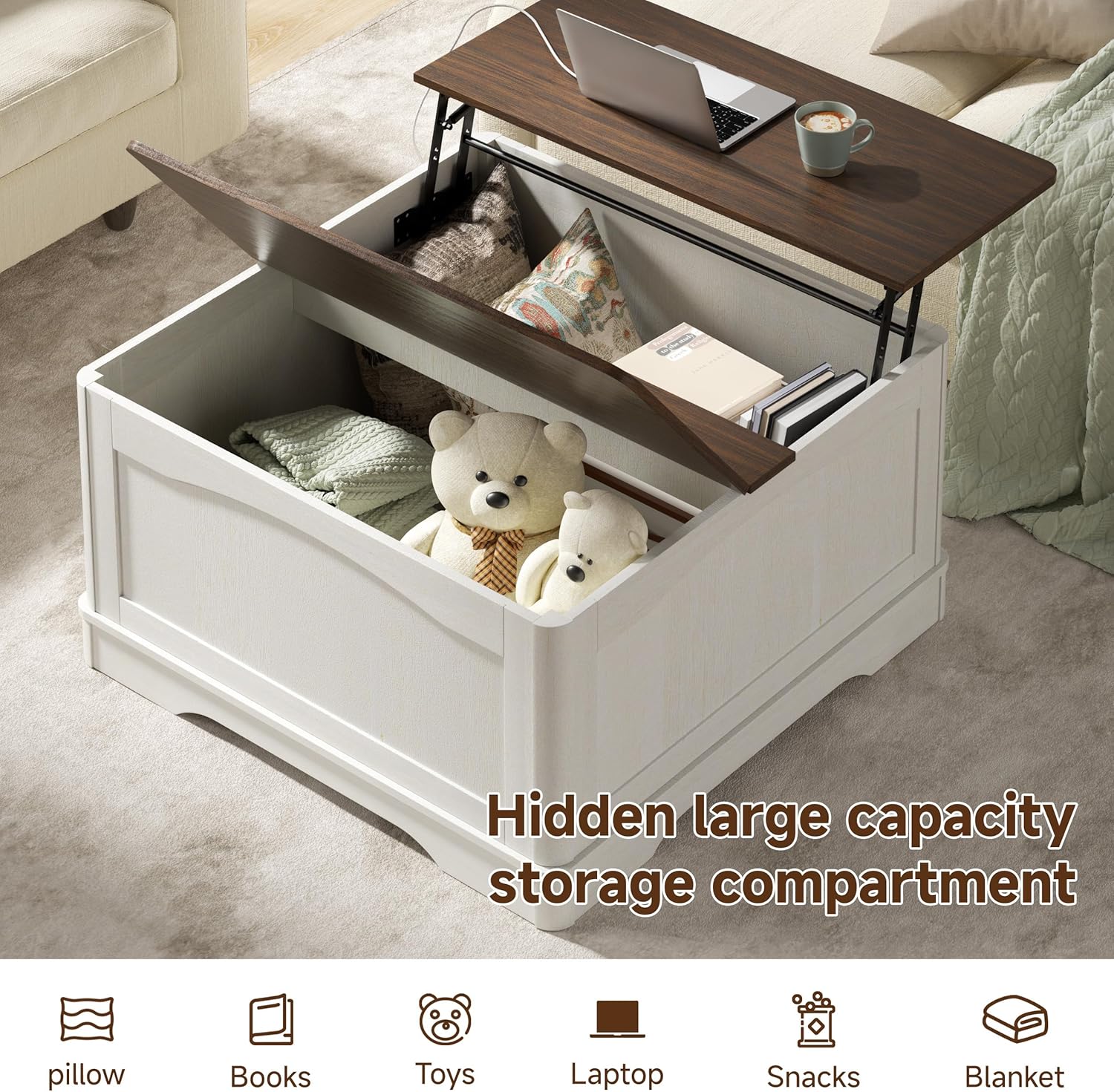 [Hidden Storage Space] The lift-top opens to reveal hidden storage, ideal for organizing remotes, books, and blankets. A coffee table with hidden storage keeps your living room clutter-free and stylish.
