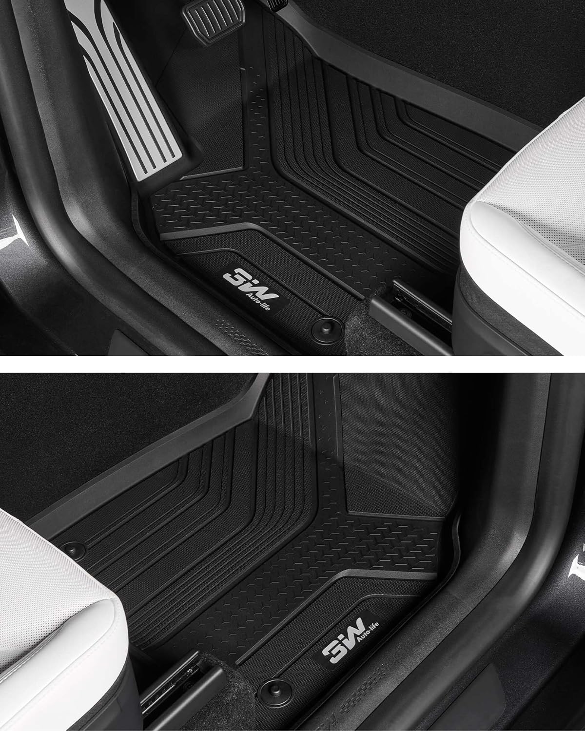 UPGRADED DESIGN: New version of metal pedal more non-slip and durable. The front floor mats come with additional storage space for storing umbrellas and other items; Extended design of rear floor mats covering under the seats