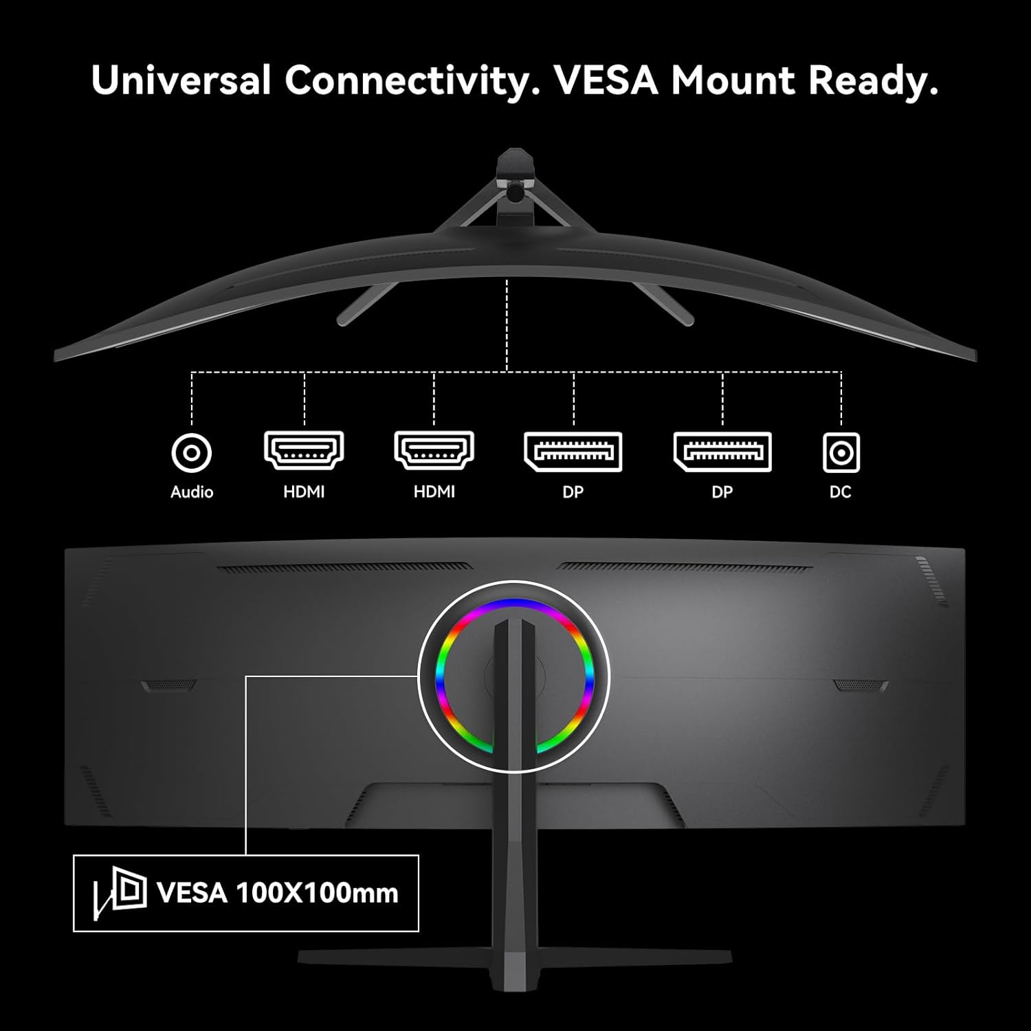 [Adaptive-Sync & Versatile Connectivity] Eliminate screen tearing and stuttering with FreeSync technology for seamless GPU-to-monitor synchronization. Equipped with DP 1.4 (165Hz) and HDMI 2.0 (100Hz) ports plus 100x100mm VESA support it offers the ultimate flexibility for any high-end workstation or gaming rig.