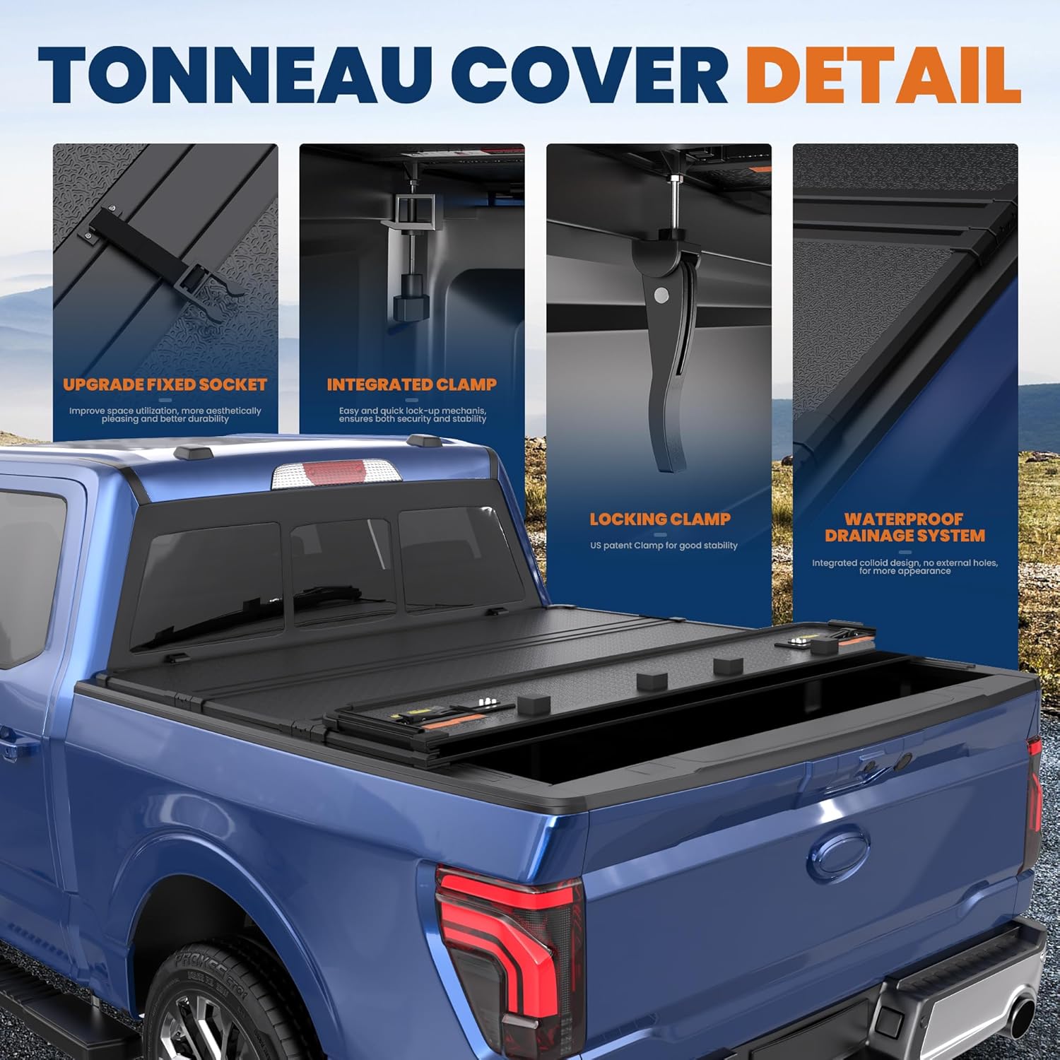 [Weatherproof and UV-Resistant] This tonneau cover can keep your truck bed contents dry and resistant to UV damage. Easy to clean it with soap and water ensuring it remains in top condition.