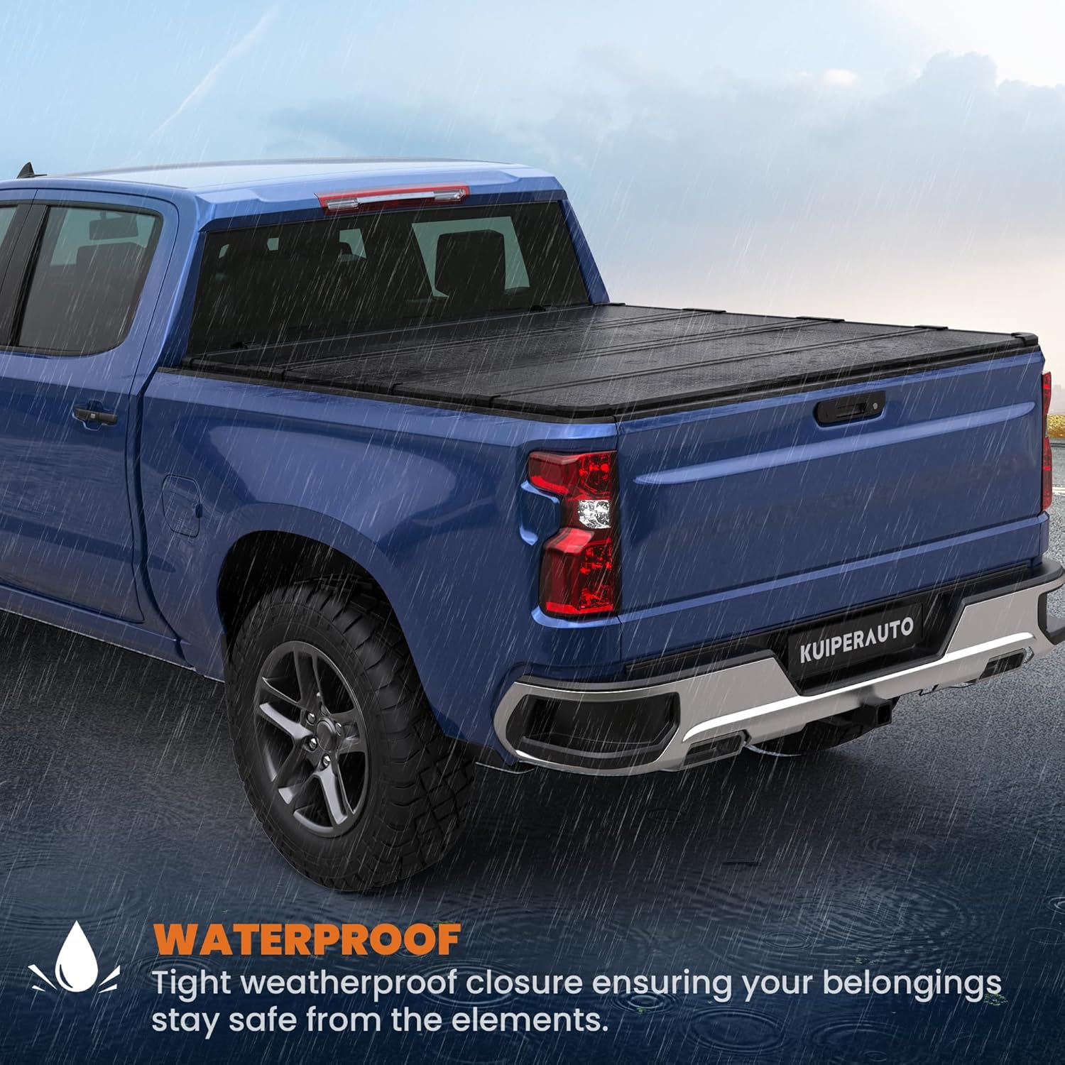 [ Waterproof and UV Resistant ] : The tonneau cover is designed to withstand water and UV rays. It can be easily cleaned with soap and water keeping your equipment dry and protected inside the bed.