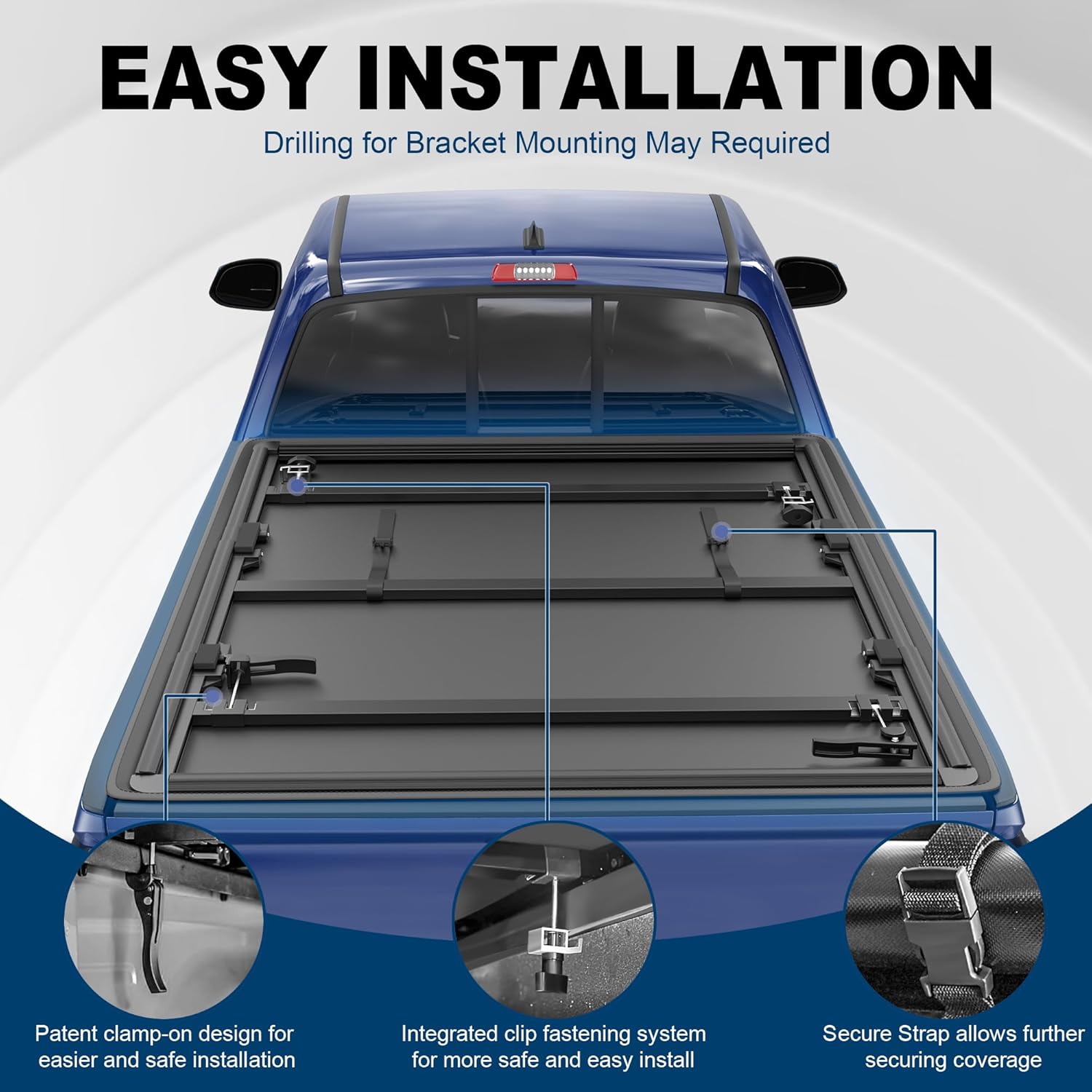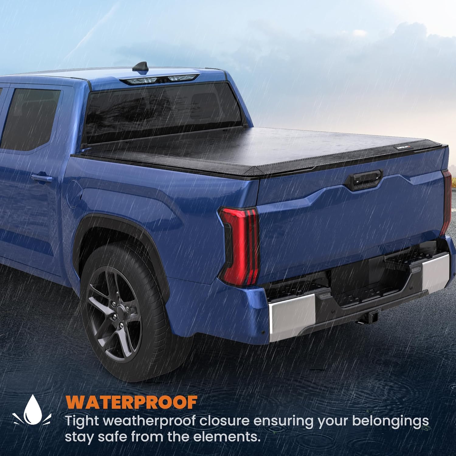 [Weatherproof and UV-Resistant] This tonneau cover can keep your truck bed contents dry and resistant to UV damage. Easy to clean it with soap and water ensuring it remains in top condition.