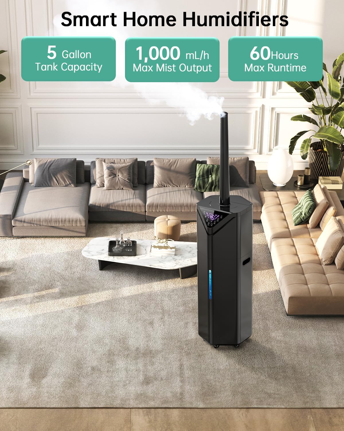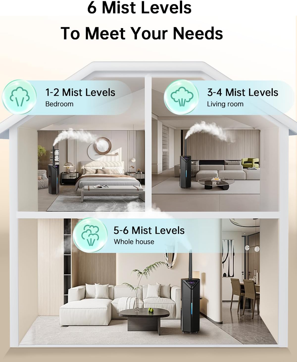 & - Forget clumsy 4-wheel humidifiers! Our upgraded 6-wheel system glides smoothly in any direction with superior stabilityno tipping worries. Built-in handles offer added control. It glides effortlessly across roomsfrom bedroom to office to living area.