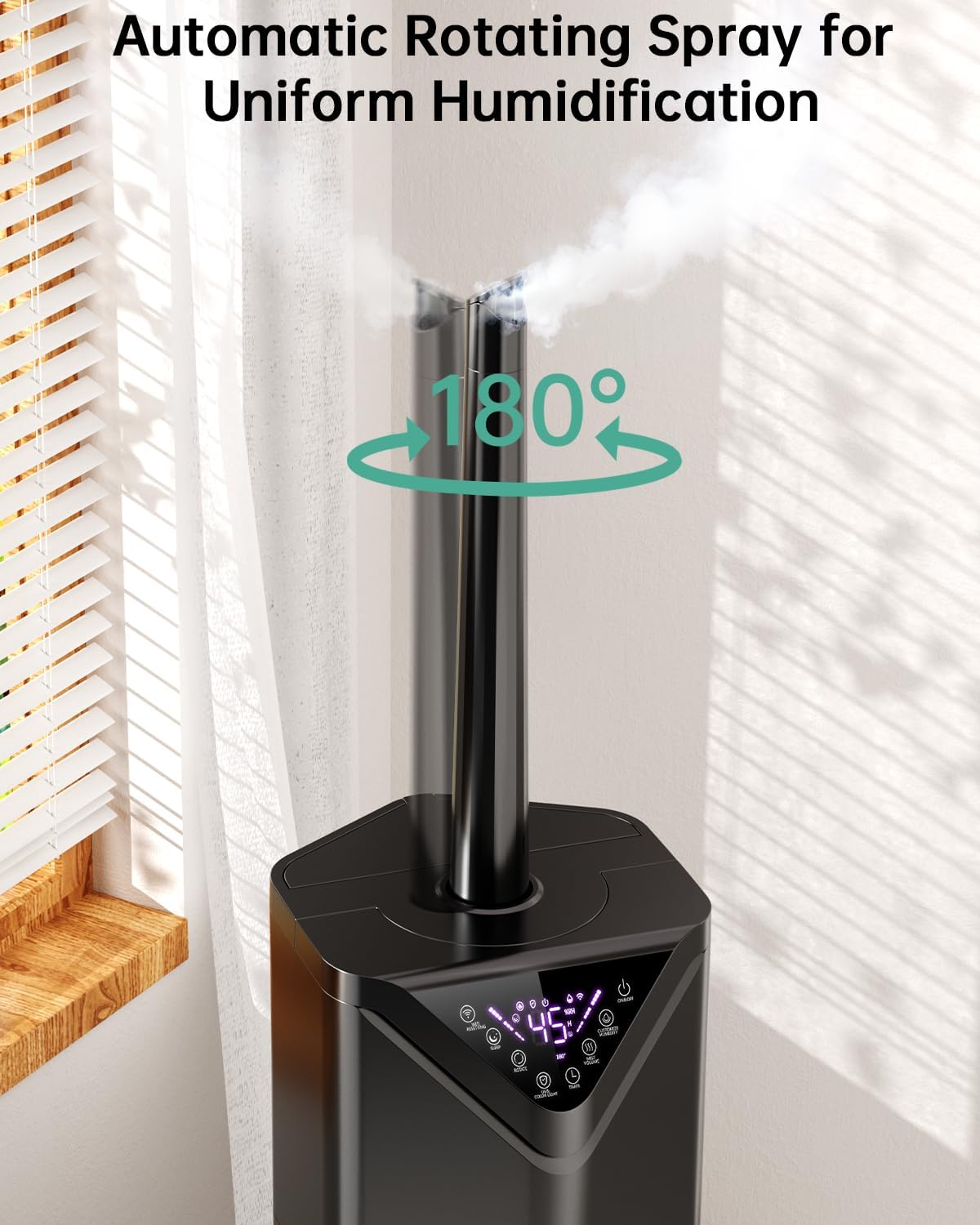 - & Our unique 18-inch extended spray pipe features 180automatic rotation to distribute mist evenly throughout your space. This targeted delivery system ensures optimal humidity dispersion, prevents concentrated moisture, and effectively protects your furniture and floors from getting wet.making it perfect for your whole house,bedroom,large room, home, office, warehouse, or even for protecting your wooden furniture and thriving
