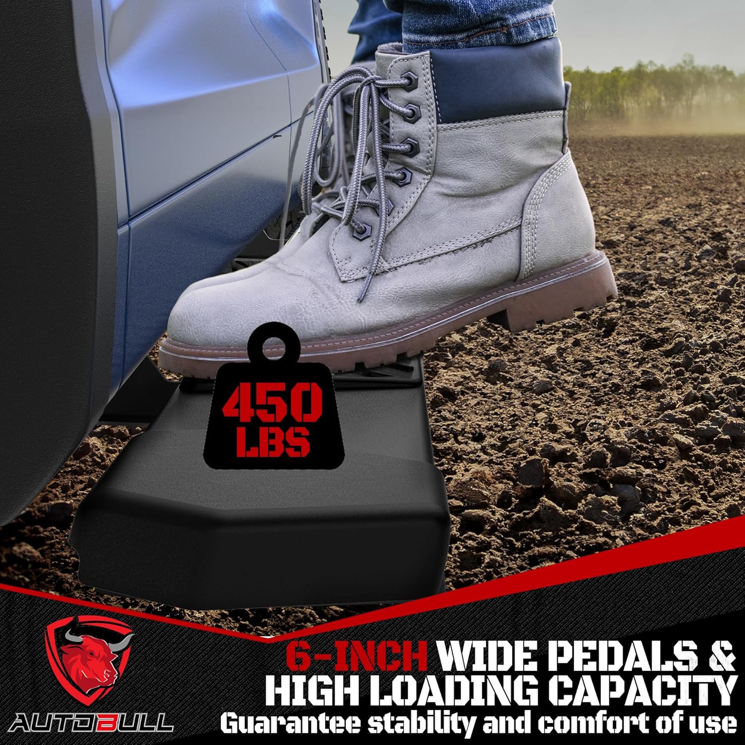 6-inch wide side steps: a sufficiently long stepping area that helps those with difficulty getting in and out of trucks making life more convenient for people.