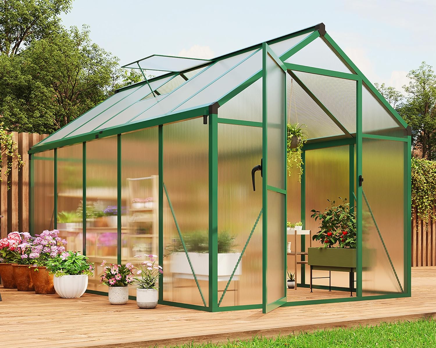 Resilient ConstructionDesigned to endure challenging weather our greenhouse features 720 g/m polycarbonate panels and a solid aluminum steel frame. This design ensures stability and protection during heavy rain and gale. Keep your plants safe and thriving in a reliable greenhouse.
