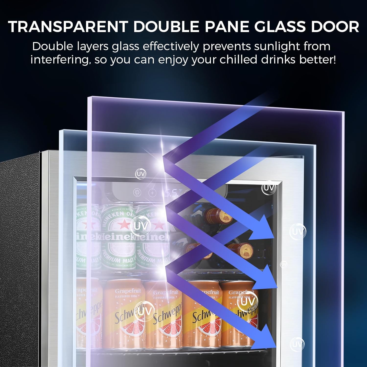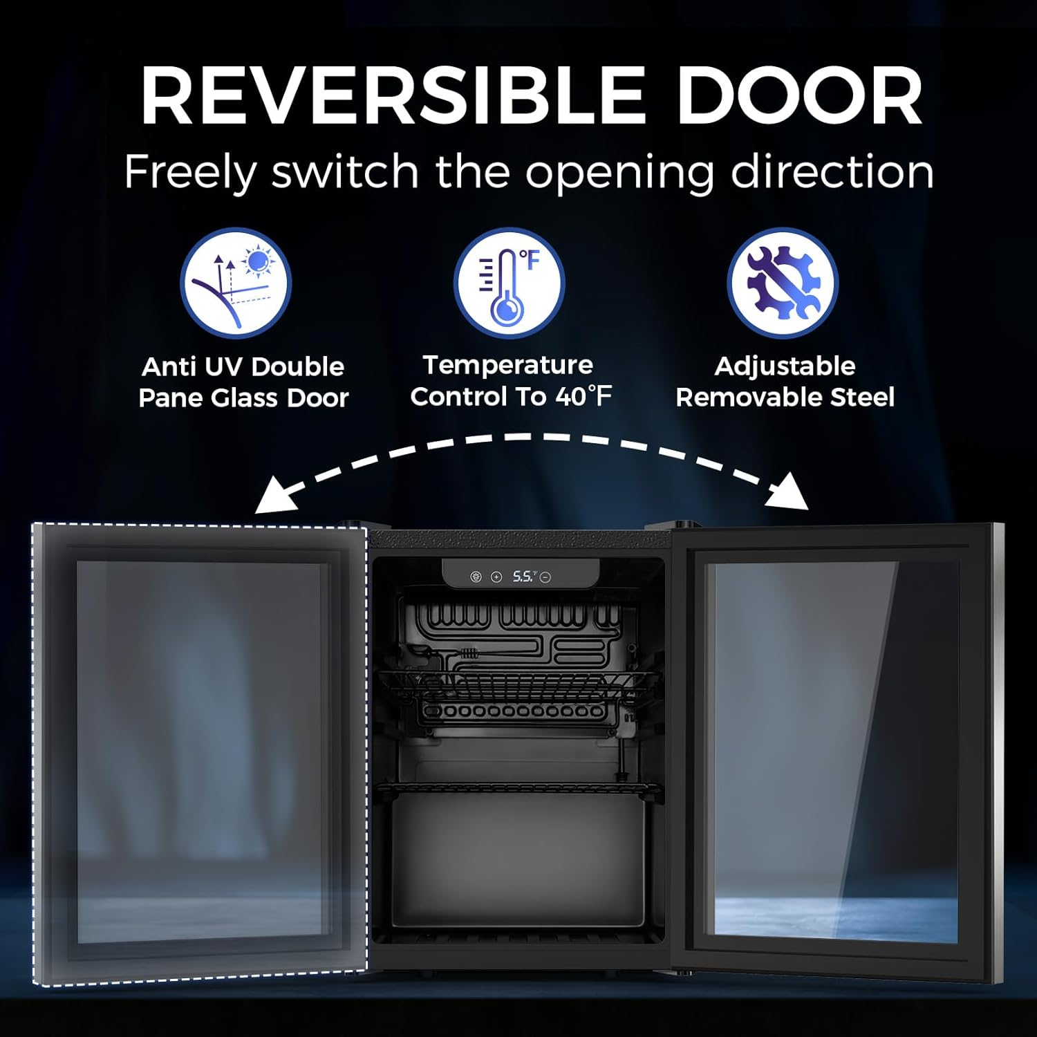 Powerful & Precise Cooling: Engineered with a high-performance compressor for fast uniform coldness. Paired with a sealed glass door that locks in the temperature while showcasing your drinks ensuring every beverage is instantly ready to enjoy.