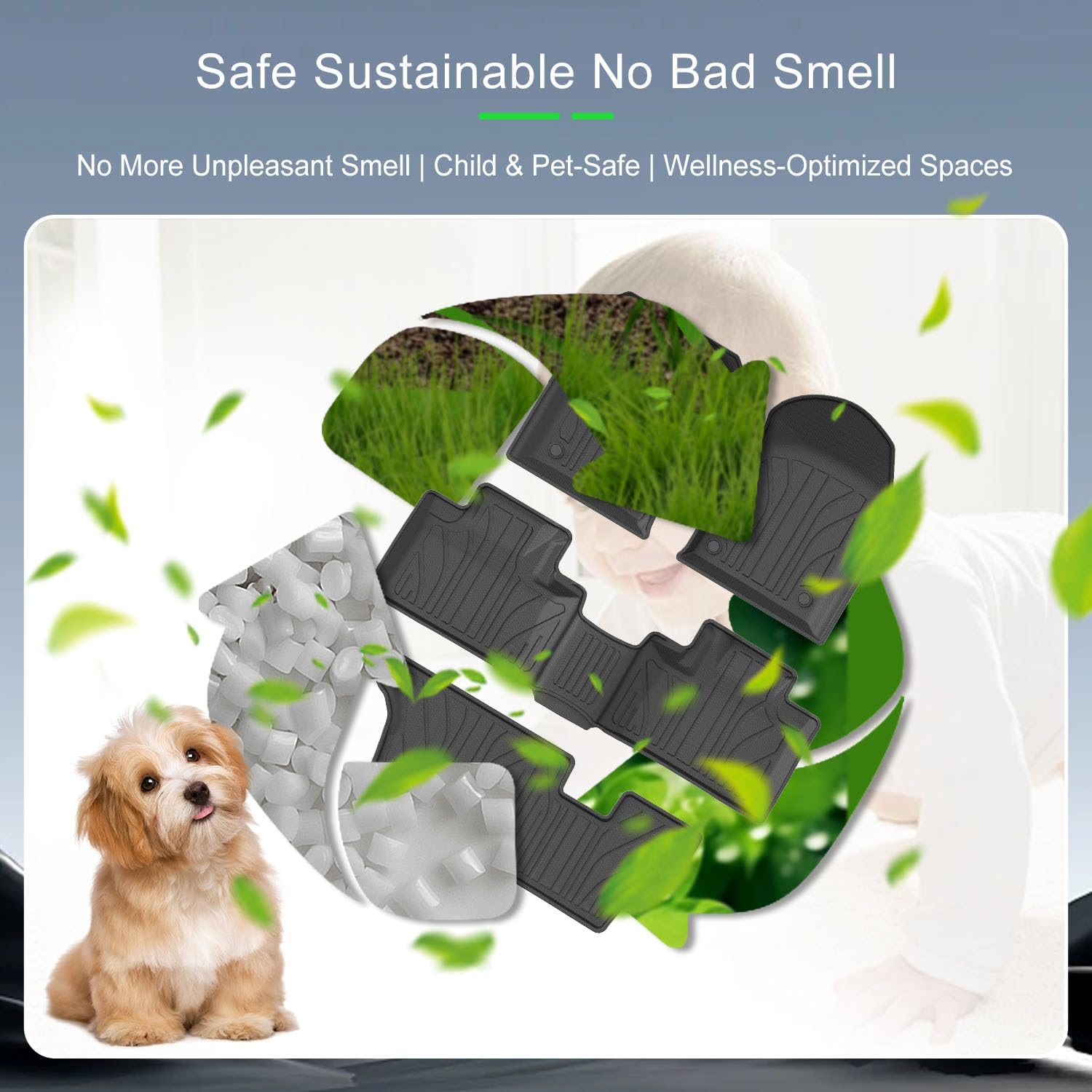 Premium TPE Material:Our 3rd row seat back protector cargo liner and 7 seats floor mats are made of quality TPE material which has good flexibility.The TPE material provides a soft-touch feel and maintains wear-resistant and tear-resistant.Please rest assured to use it because it has no bad smell and you could use it for a long time.