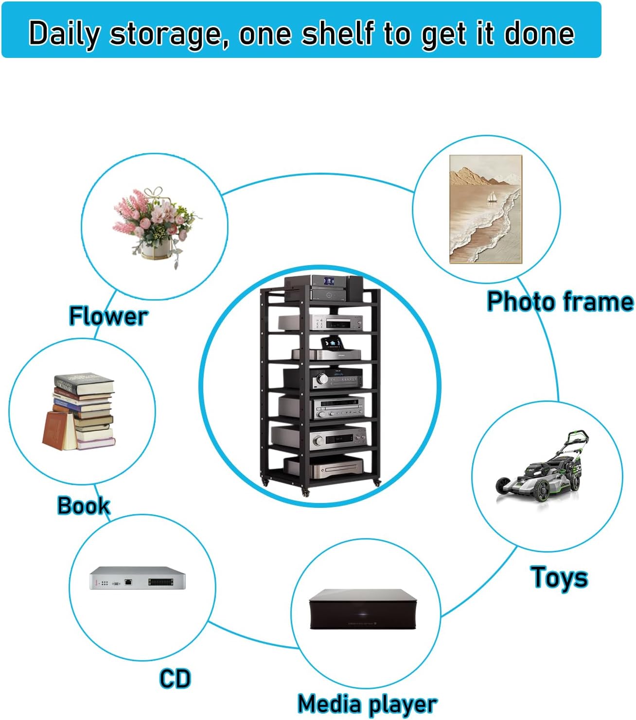 VERSATILE USE: The stereo stand can be used to place amplifiers speakers mixers karaoke machines printers books stationery potted plants etc. suitable for home office shop etc