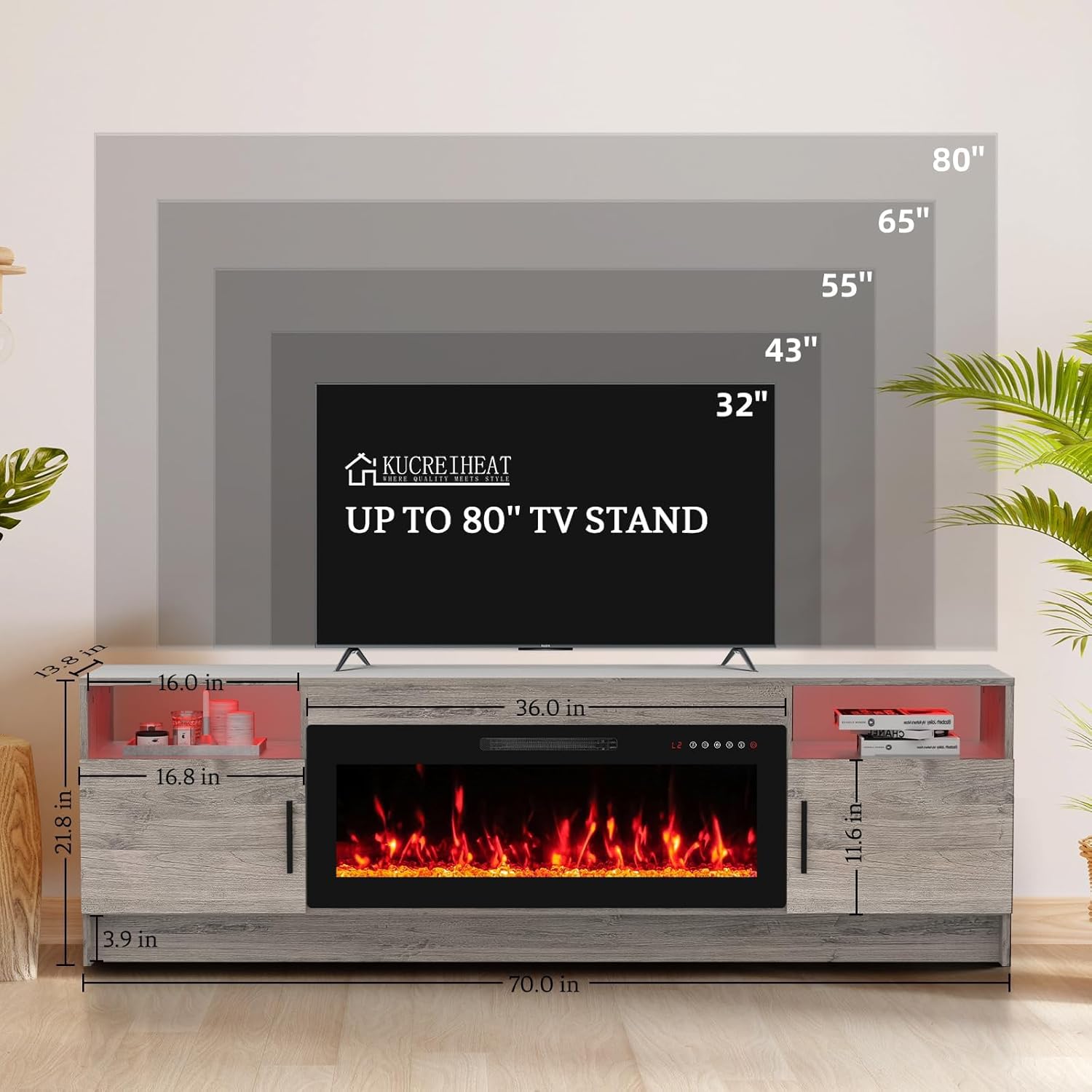 ETL Certificated LED Fireplace: Enjoy a more vivid, high-definition flame effect with or without heat. The upgraded 36" insert features clear flame visuals with 12 adjustable colors, 5 brightness levels, and a timer from 1 to 8 hours. Choose between 750W or 1500W heat settings to match your comfort and energy needs all easily controlled by touch panel or remote